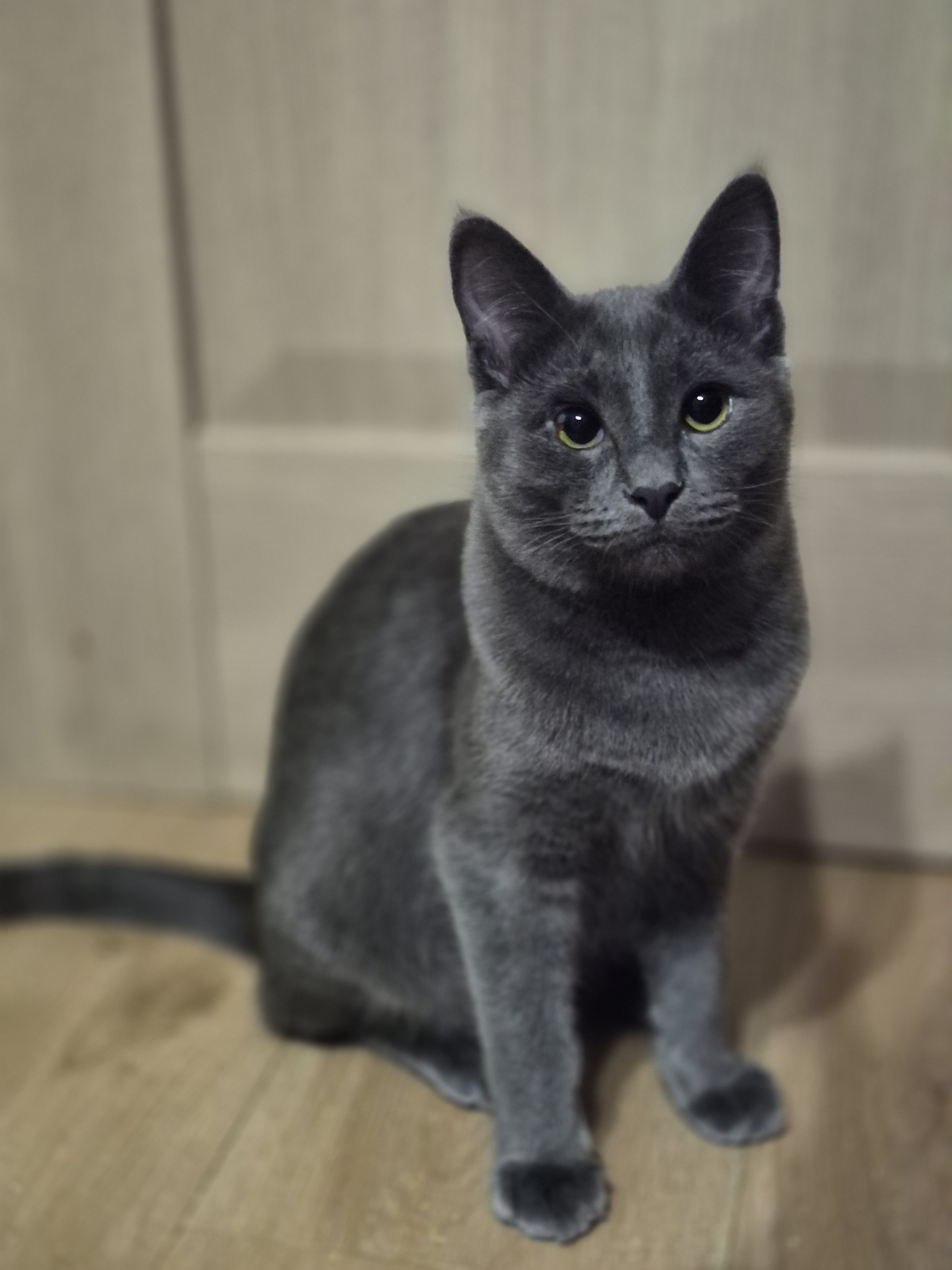 Остался самый слабенький из помета, он был самый маленький красивый голубой котенок.