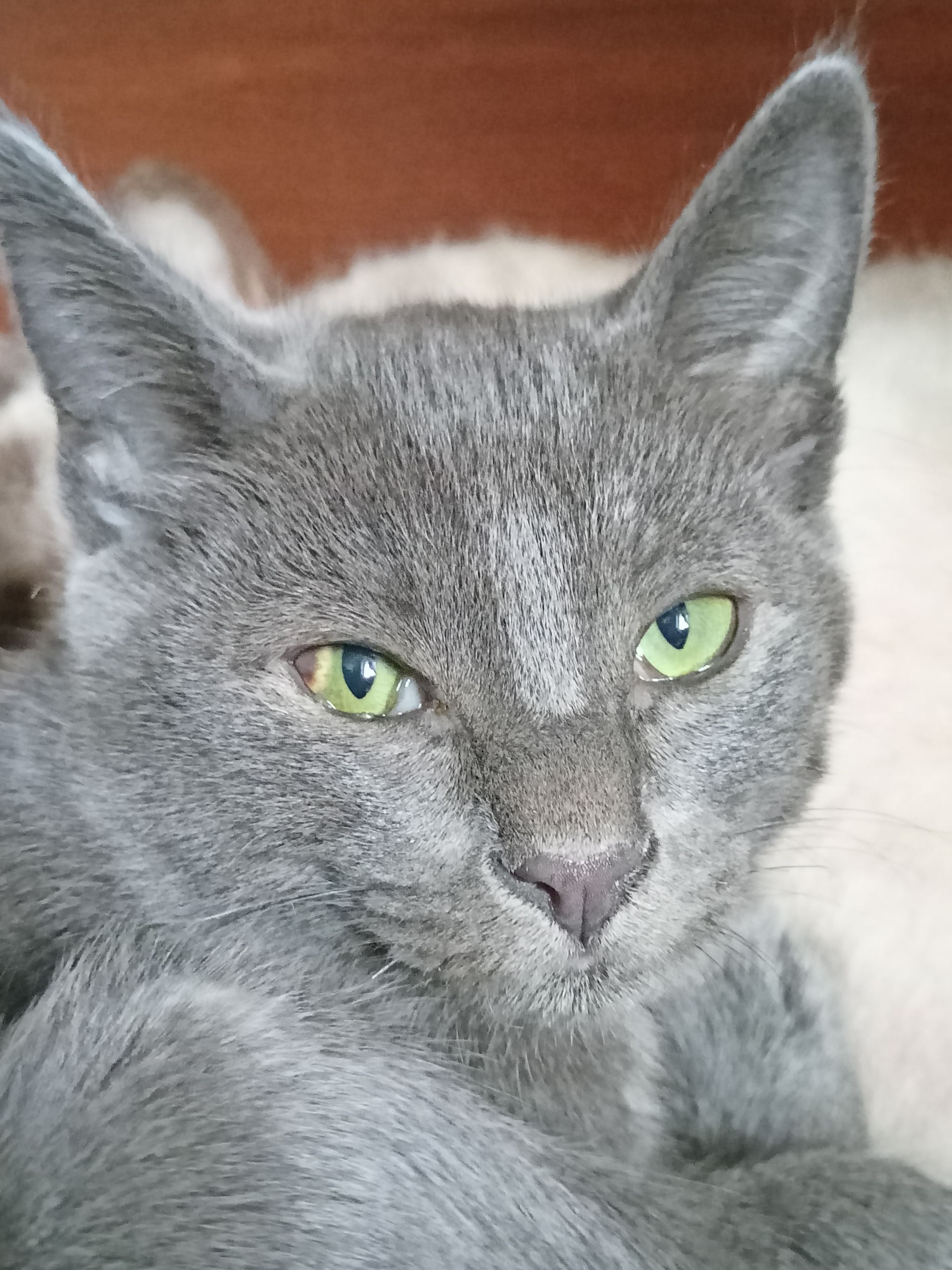 Сперва его лечили от лишая, потом потекли глазки, обнаружили пятнышко в глазу, возили к окулисту, но вроде никаких опасения пятно не вызвало.