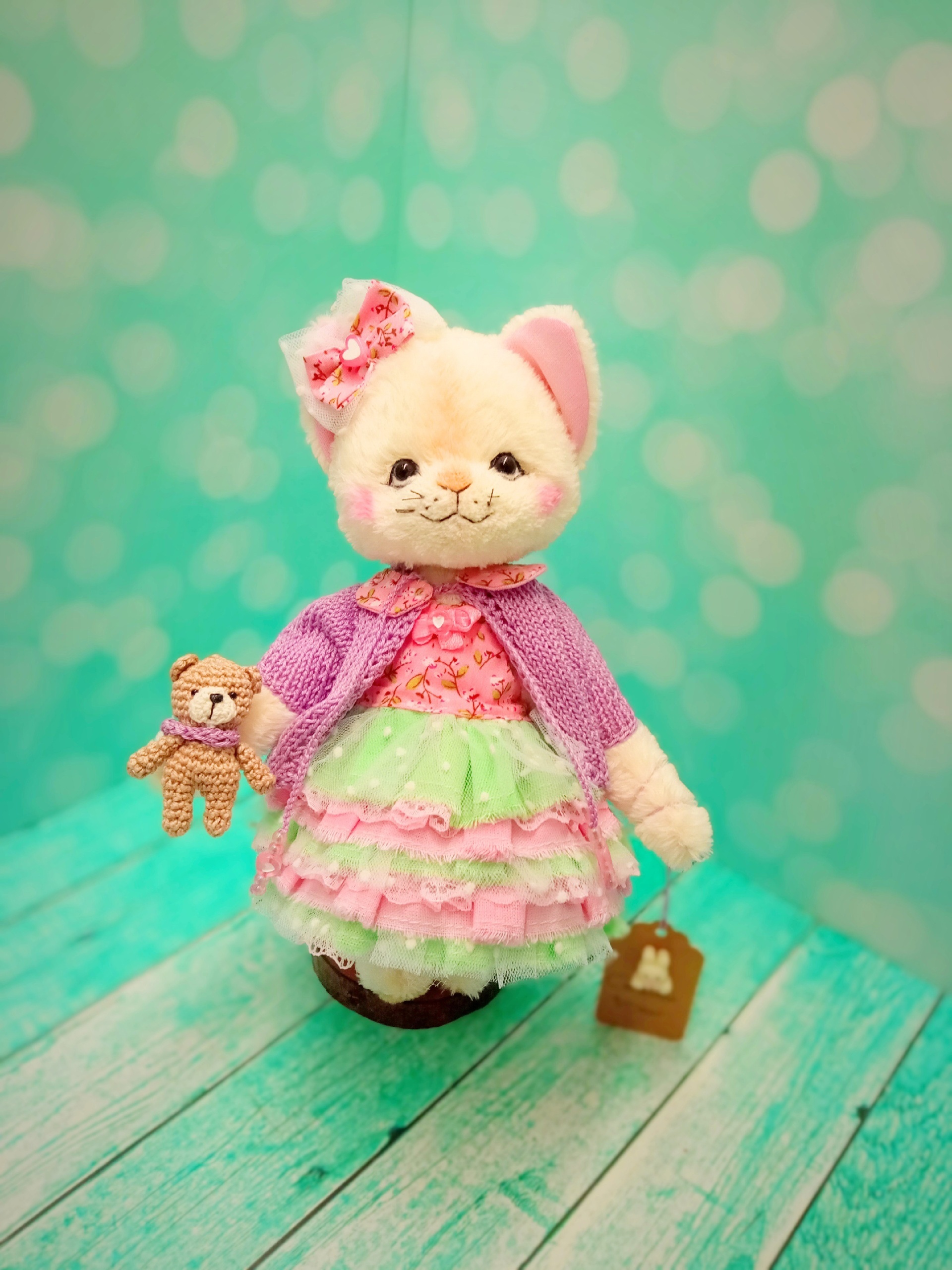 Кошечка сшита из искусственного меха вельбоа, одежда из хлопка. Рост около 18 см