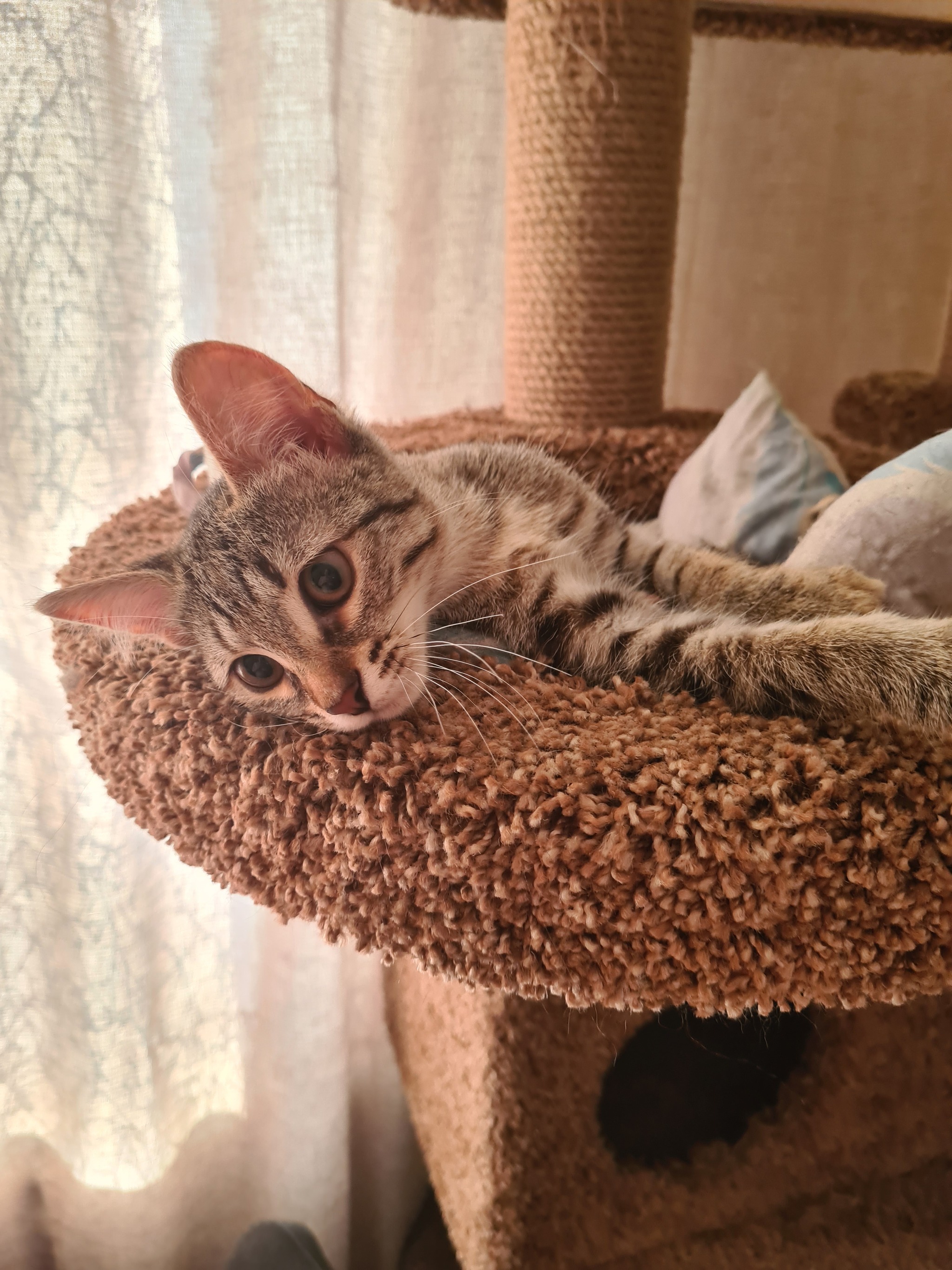 Ей 3,5 месяца, все обработки проведены, кушает сухой корм, в лоток ходит.