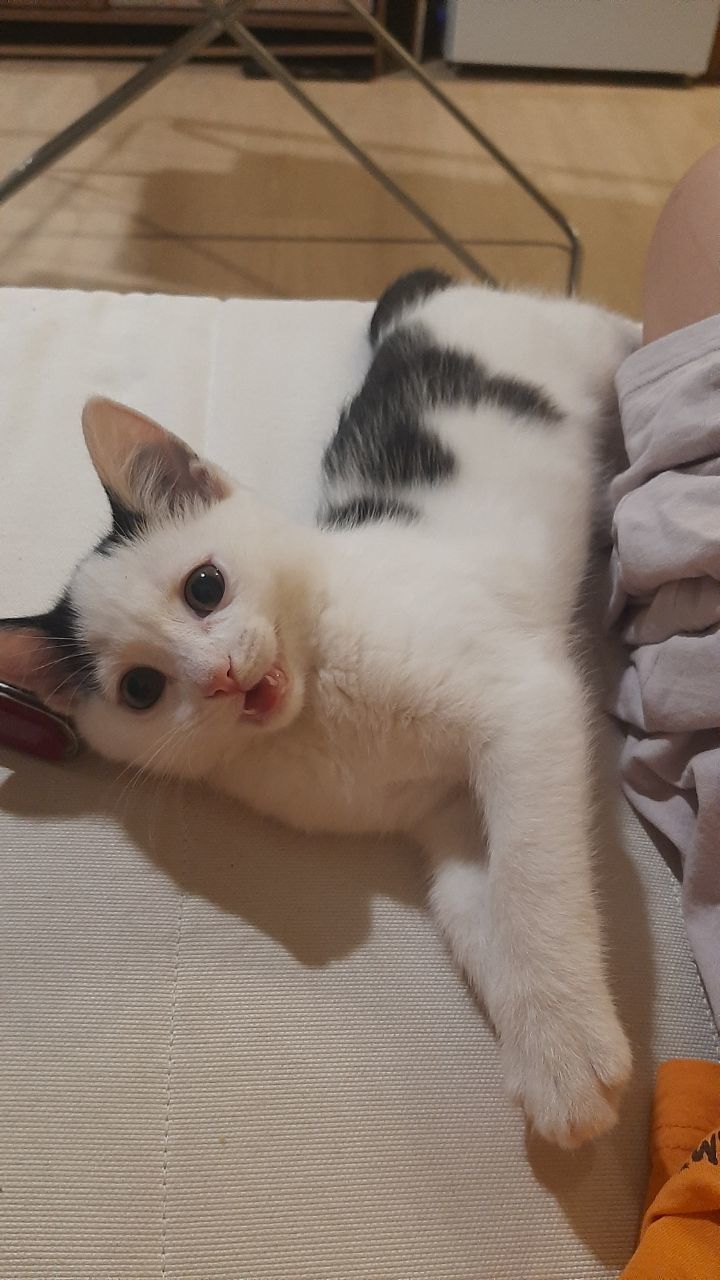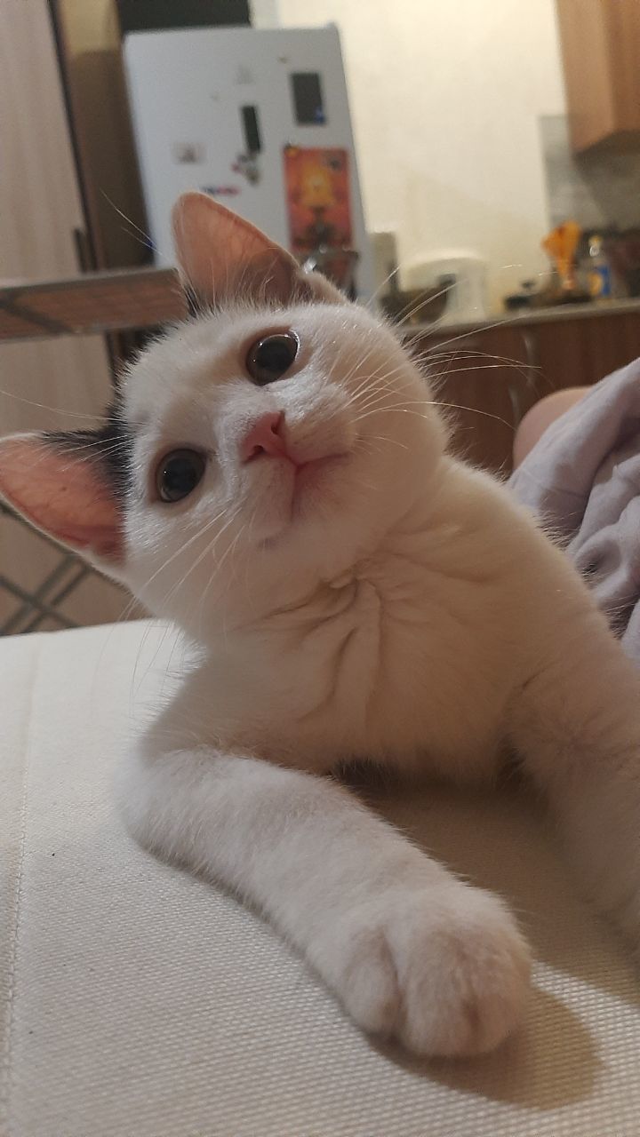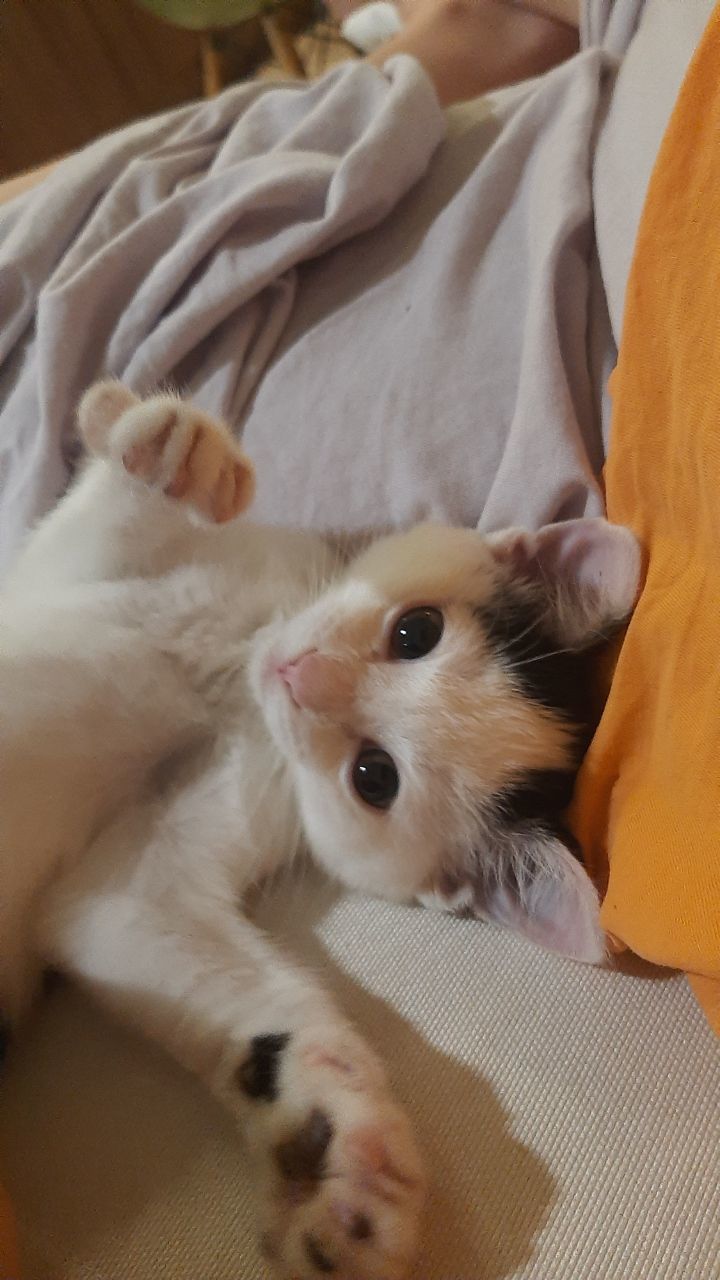 Соседские дети нашли котят в кустах, четверых быстро разобрали, а это чудо не могли пристроить до вечера. Забрали на передержку, но у нас в квартире уже три кота - слишком тесно.