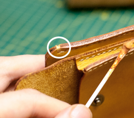 Красим урез лаком kenda или натираем воском, кому как нравится. ещё его можно подровнять и подшкурить. Я ещё подумал и изменил форму клапана на кармашке, сделал поменьше и со скосом.