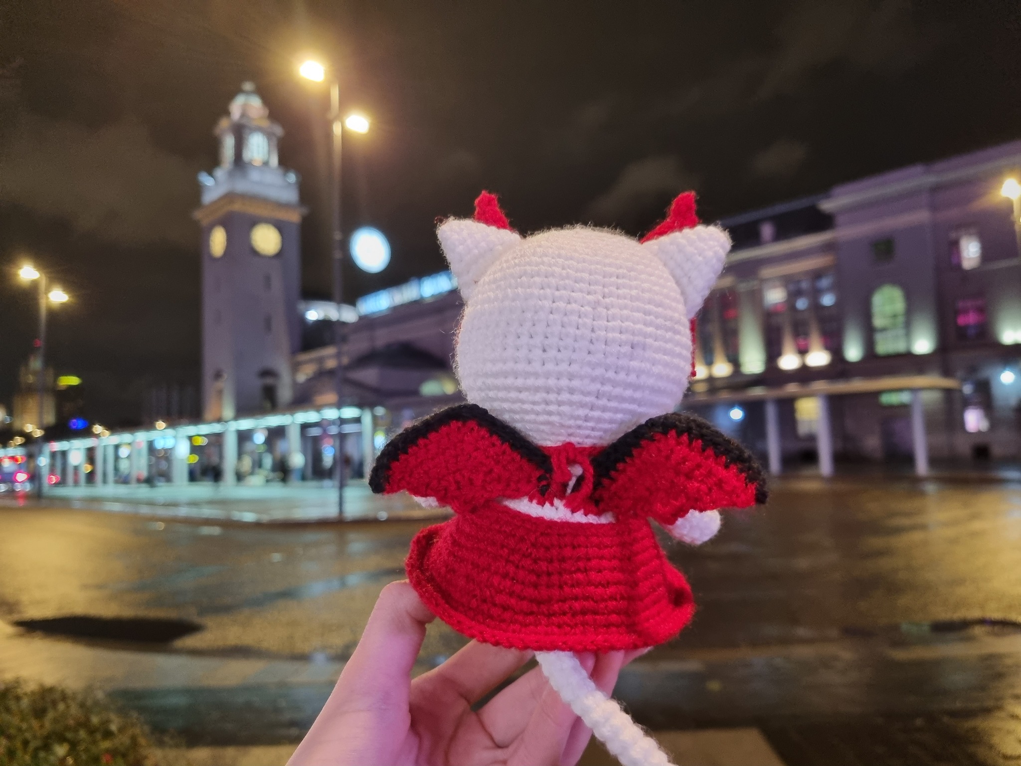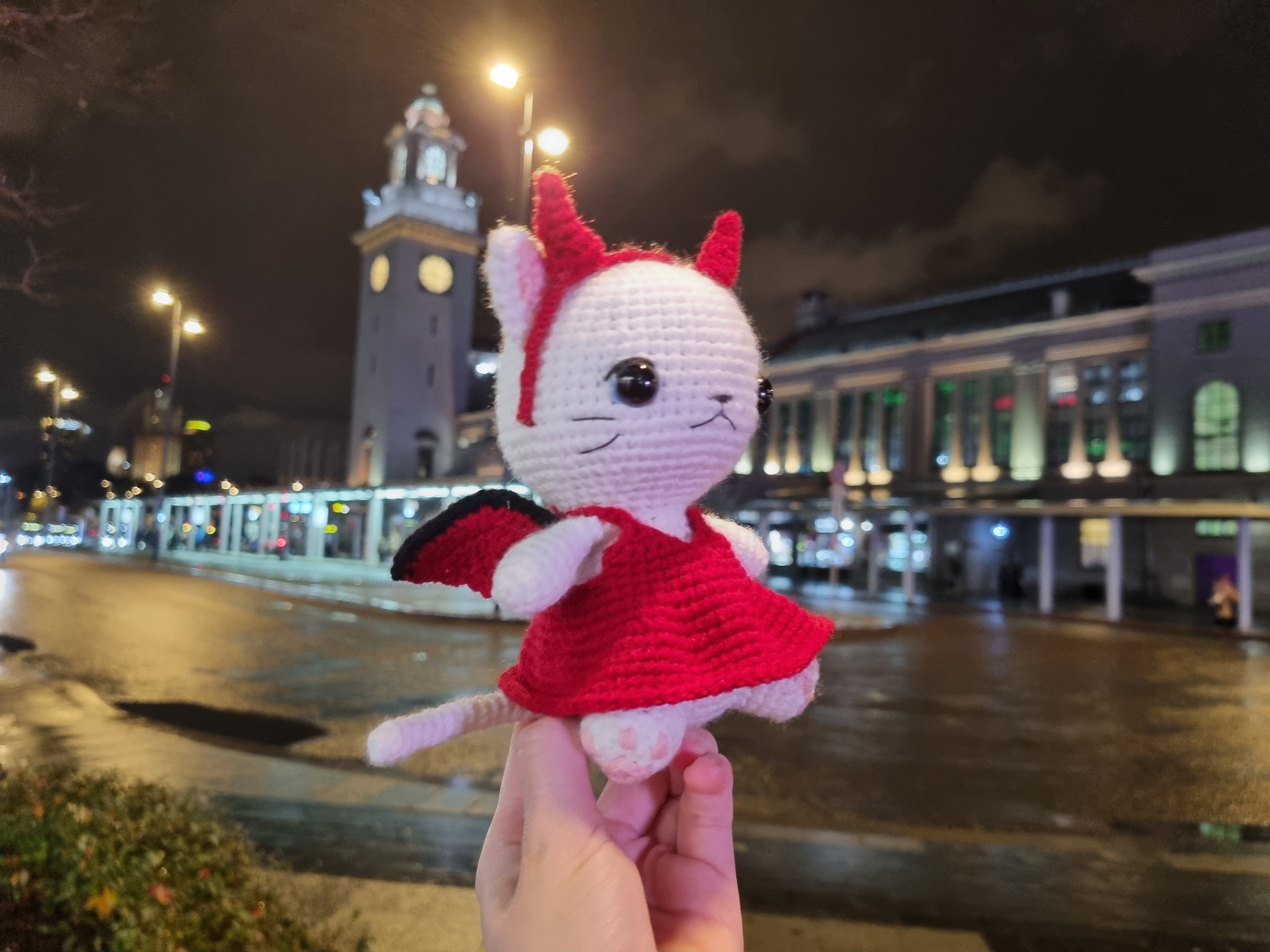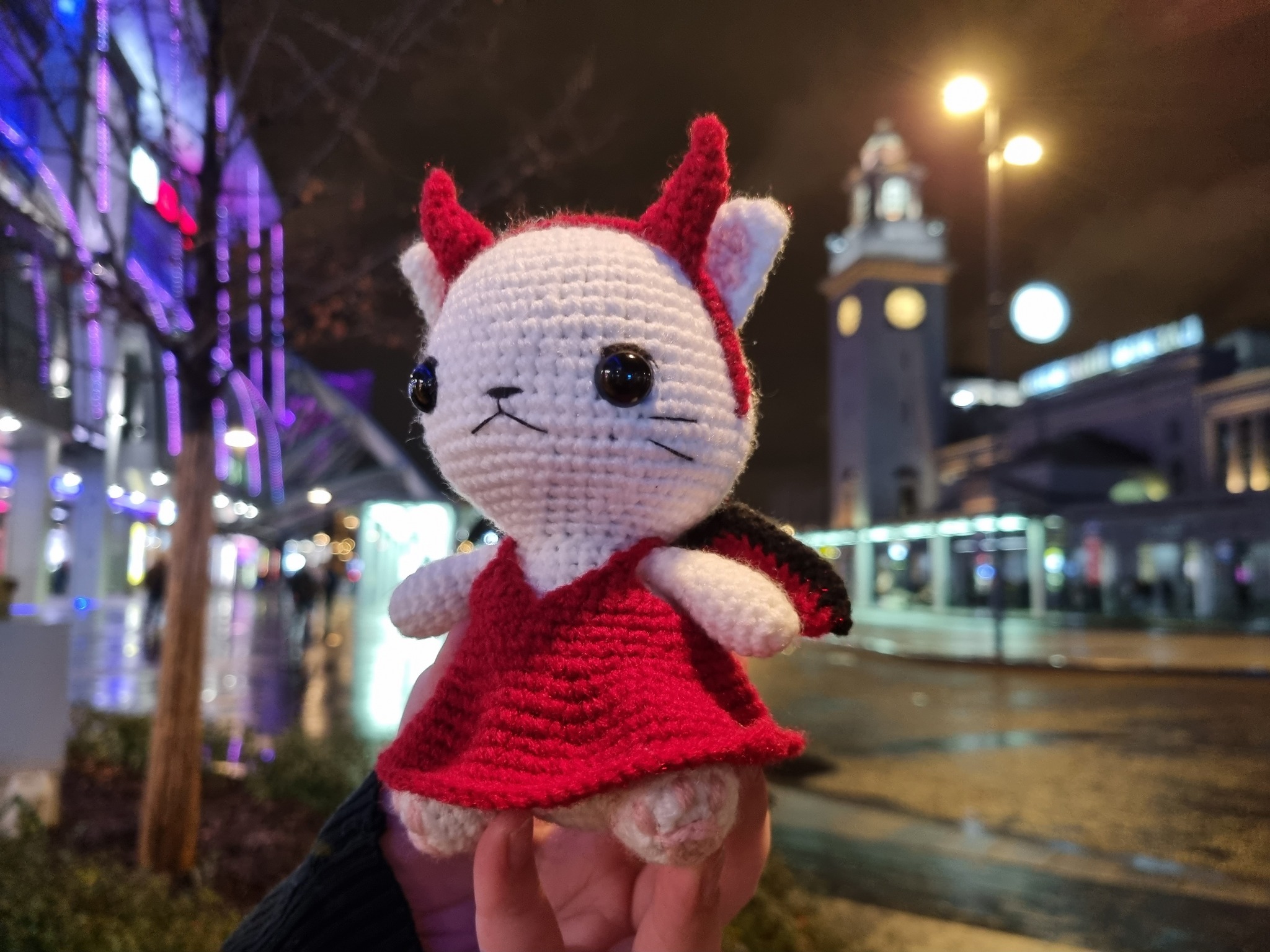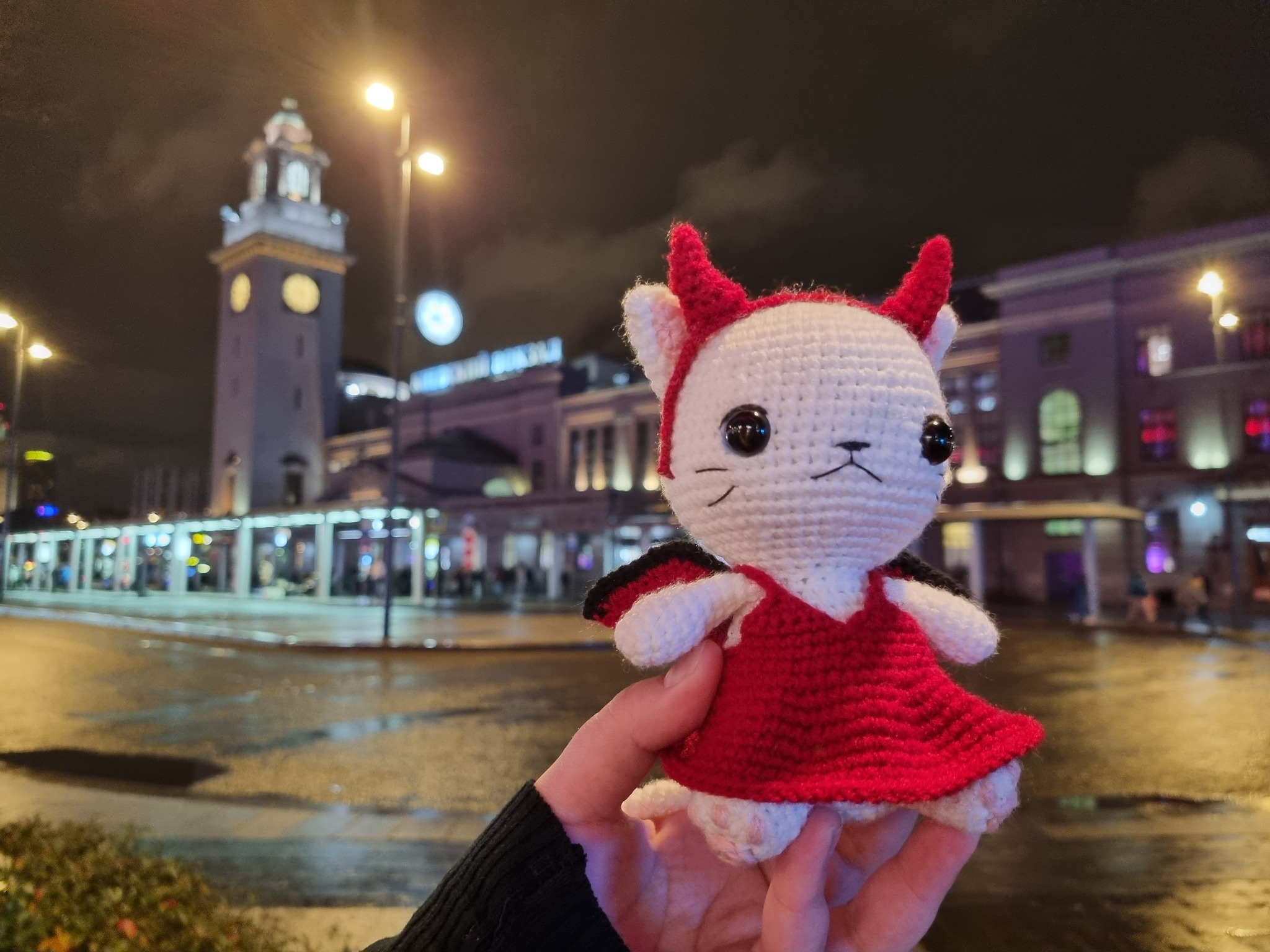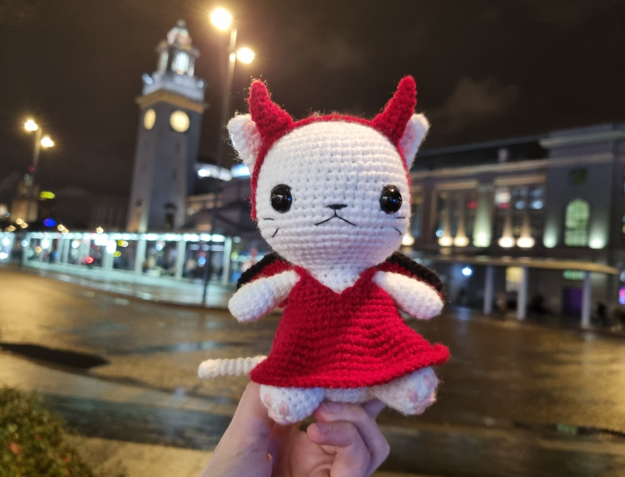 Кошечка вышла чуть большей по размеру, чем магический котик, потому что в этот раз я использовала другую пряжу и, буду честна, мне не очень понравилось, как она повела себя в этой игрушке, как мы с Tori заметили, «Семеновская «Суфле», особенно белая, ложится как-то "дыряво".