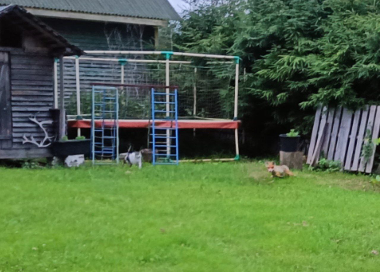 И вот опять. Вечером жена делала что-то в городе, и краем глаза увидела, как лиса пролезла на участок под забором. Молодая лиса. Наша кошка Ума тут же бросилась в тот угол участка, Ленка пошла неспеша за ней, и успела сделать пару кадров на смартфон. Кошка погнала лису за дом и дальше с участка.