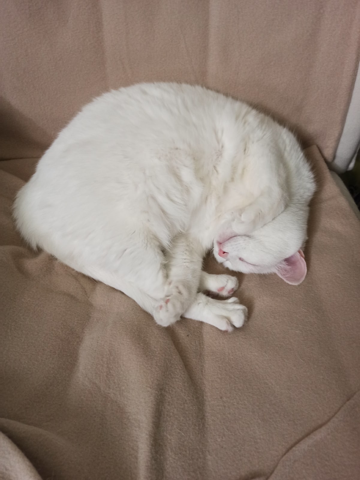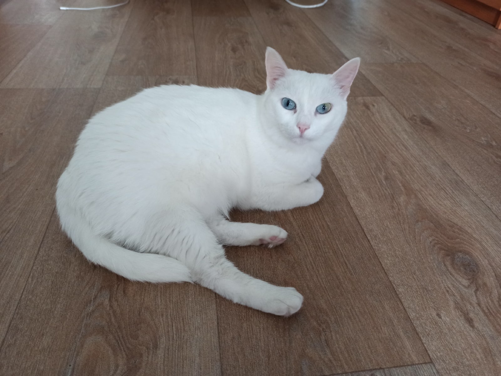 Кошку зовут Масяня, но я зову ее Белая Падла. Она все равно глухая и не отзывается. Любит она только маму и сестру, всех остальных нещадно опиздюливает. Непримирима к другим животным от слова совсем, готова стать героем даже об огромную собаку, если та появится в поле ее зрения.