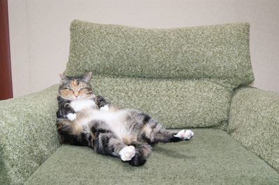 Моменты, когда она сидела бы, изящно сложив лапки и изображая Кошку, Которая Смотрела На Короля, по пальцам пересчитать можно. Зато просто огромное количество совершенно поломанных и долбанутых поз, которые эта кошка принимает тогда, когда чувствует себя в безопасности.