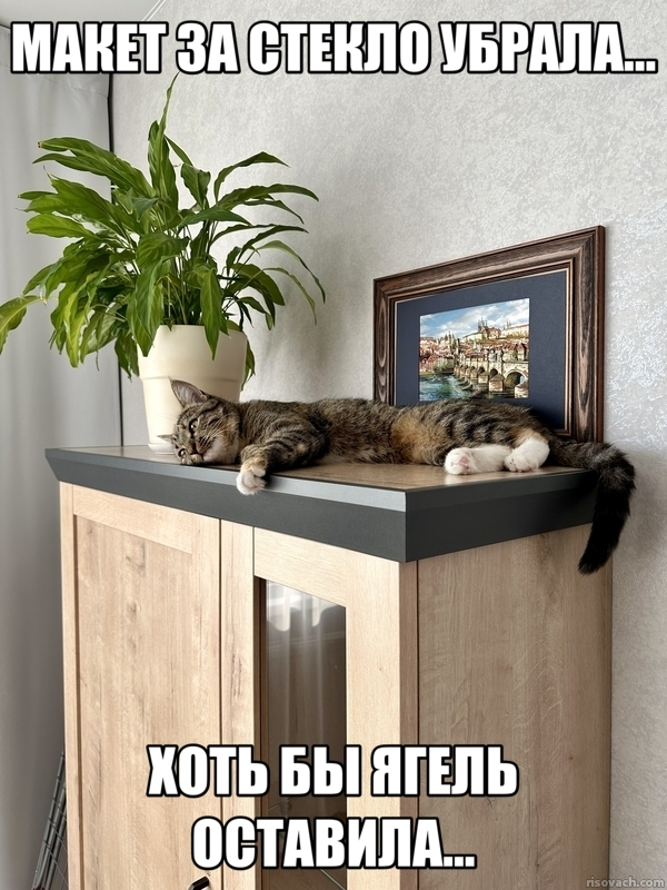 А своим заказчикам я всегда советую хранить макеты либо в акриловых коробах-витринах, либо на полках за стеклом. Так макет не будет пылиться, а также до него не доберутся кошки-обормошки!