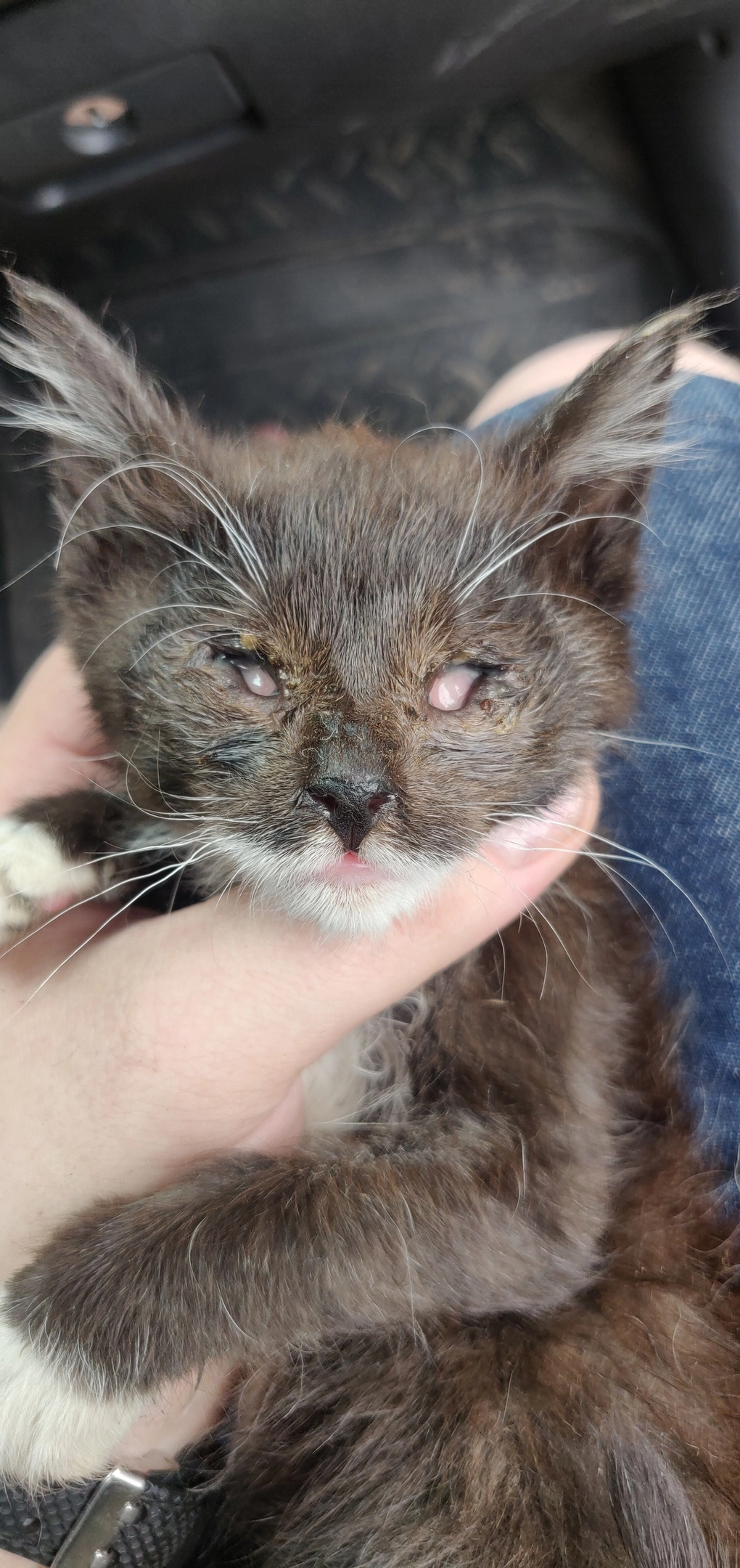 мужа-"слушай, тут котенок на проходной за мной увязался, у него что-то с глазами, может возьмем подлечить?". Т.к. мы такое лечение-пристройство практикуем иногда, то я согласилась. Кто ж знал, что "что-то с глазами" это полное отсутствие этих самых глаз....
