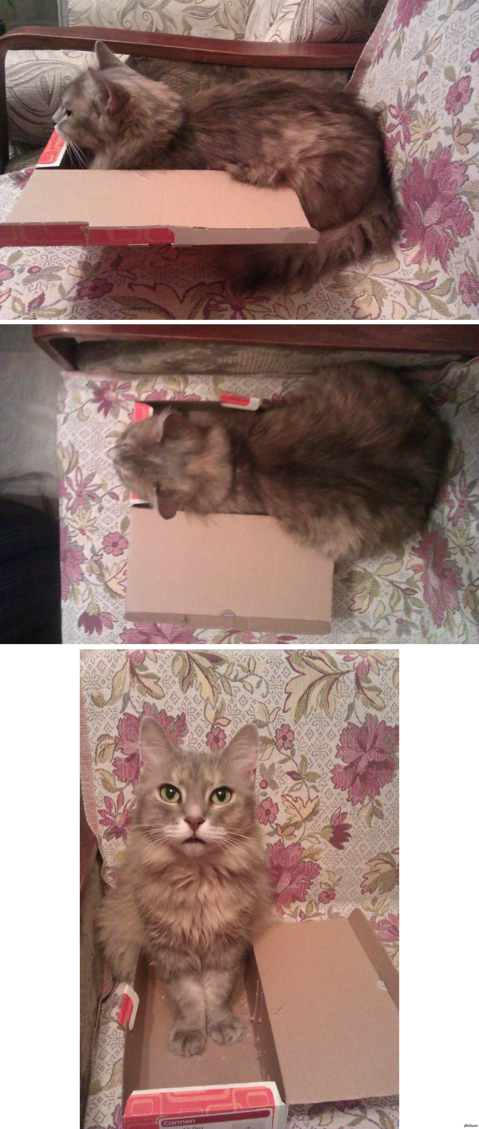 97 TypucTuK Кошка vs Коробка 11 лет назад И неважно, что коробка в 2 раза меньше [моё] Кот Коробка и кот