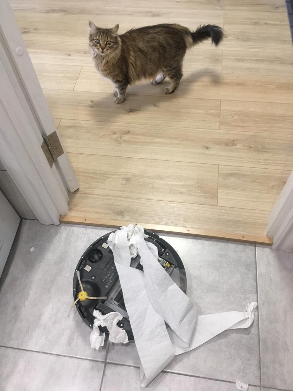 P.S.: кошка не моя, знакомых знакомых. Придя домой, застали такую картину)