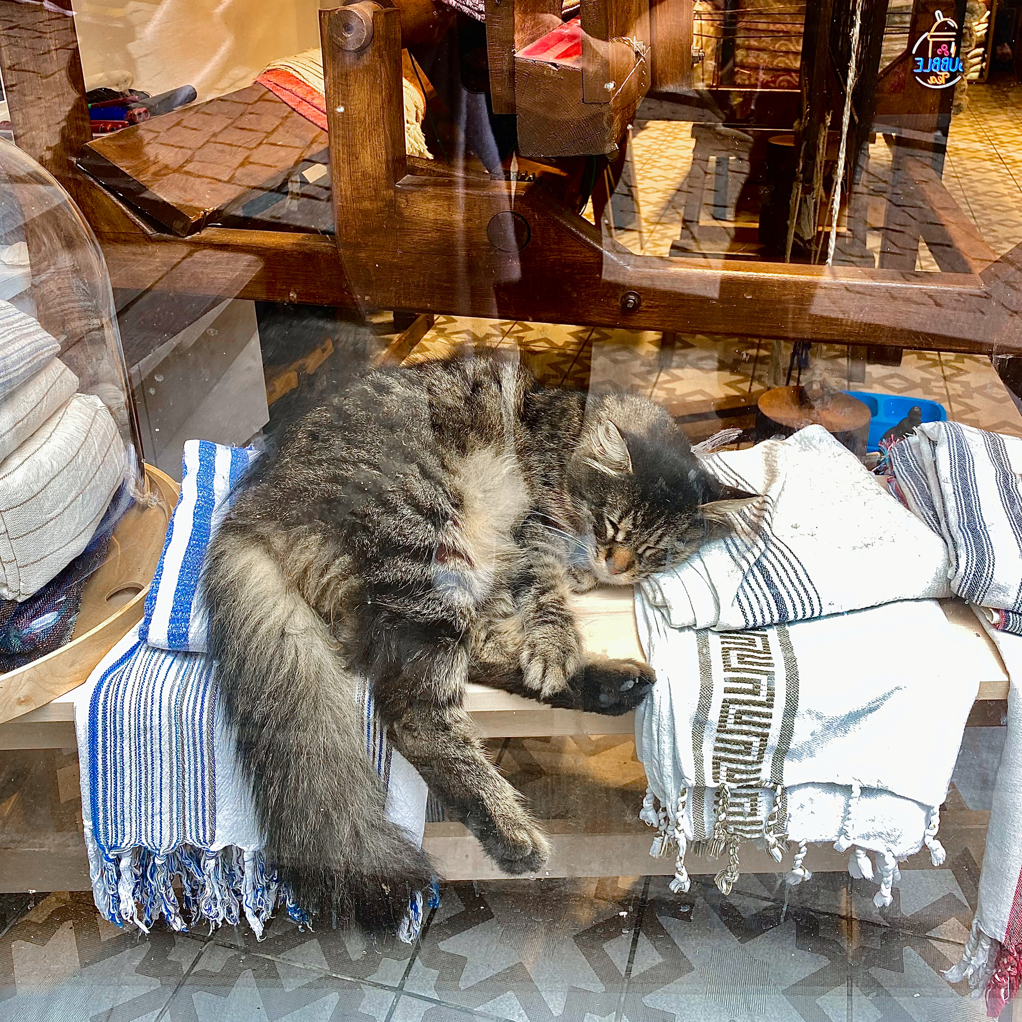 К кошкам принято относится если и не с уважением, то, во всяком случае, не обижать их. Их можно встретить повсюду, и местные жители, а порой даже и муниципалитет, часто ставят им небольшие домики, чтобы животным было где погреться и спрятаться от дождя, в холодное время года их нередко пускают погреться в магазины и кафе. Часто можно увидеть, как кошки спят на столах в кафе, сидят на пропускных турникетах в метро и отдыхают на полках среди товаров