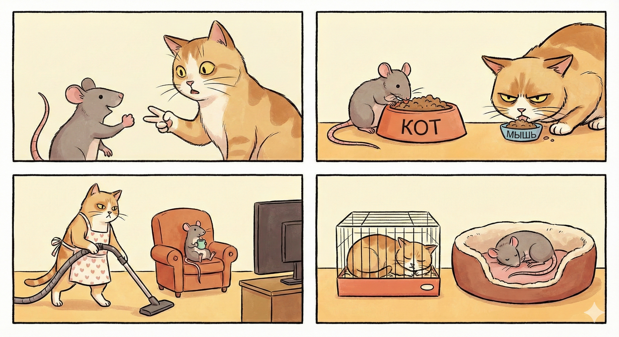 У мыши выпало "камень", у кота выпало "ножницы".