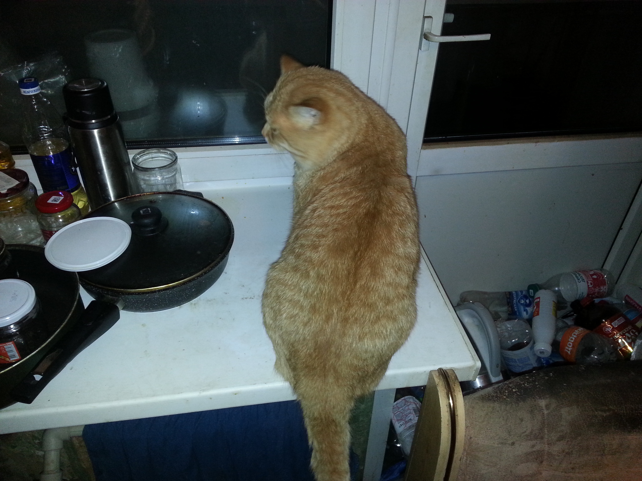 И что Вы думаете? Включаю свет и вижу на подоконнике своего кота, которому среди ночи вздумалось почесать свою рыжую жопу и он увлекшись, уронил на пол чайник и литровую банку.