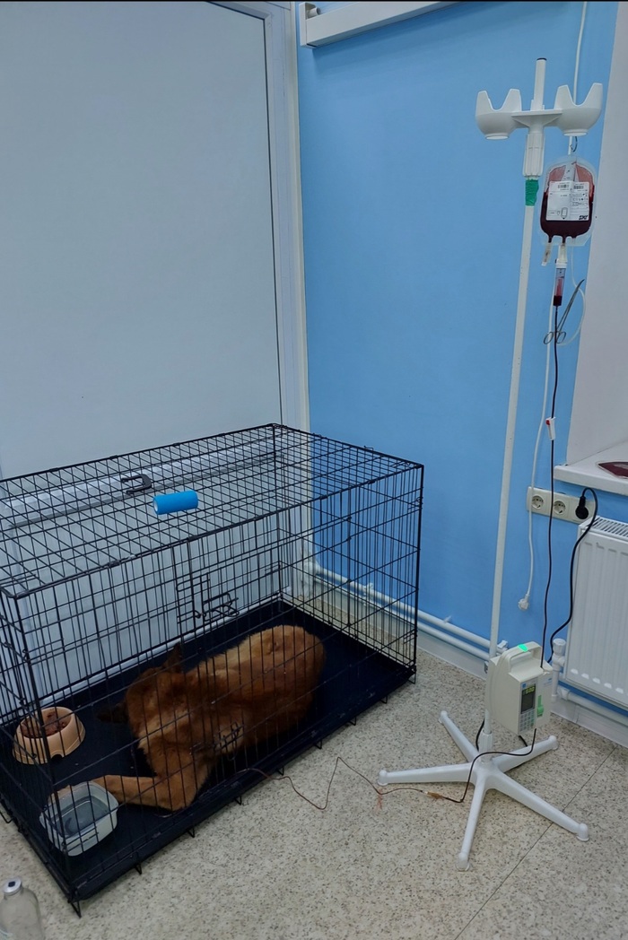 Также пациенту был введён препарат против кровепаразитов, переносчиком которых являются клещи. Через пару часов привезли донора, и мы начали переливание крови, которое прошло успешно.