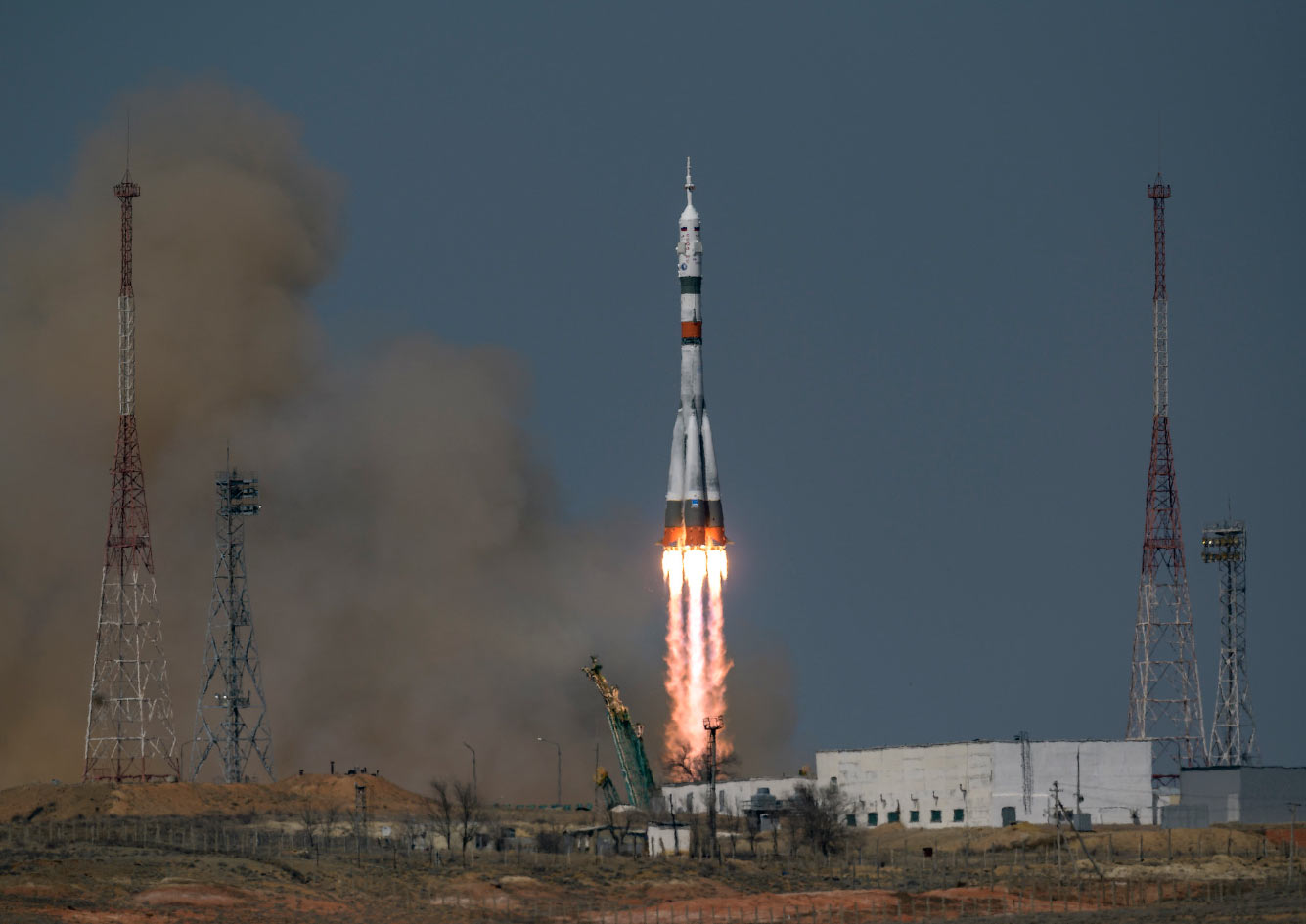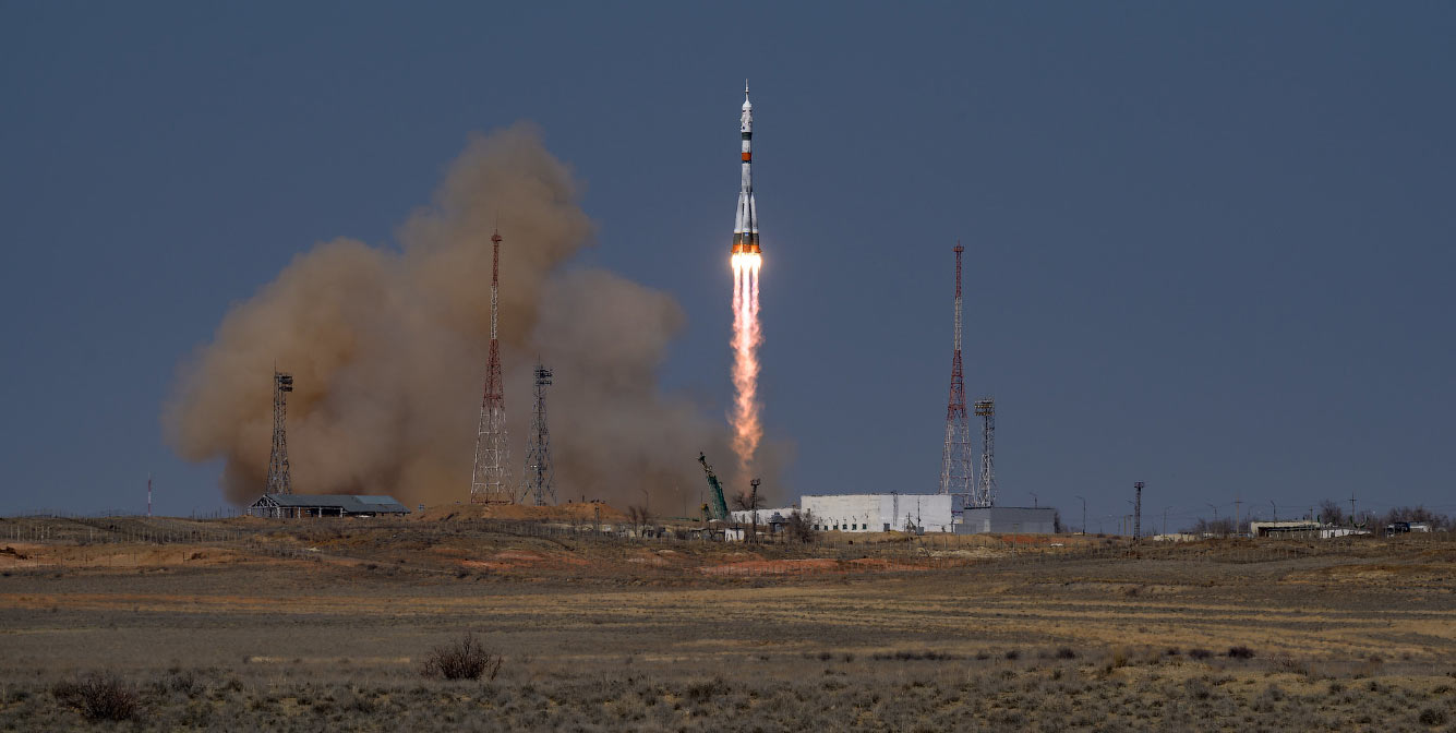Старт космического корабля «Ю. А. Гагарин» («Союз МС-18»), космодром Байконур, 9 апреля 2021. (Фото NASA/Bill Ingalls):