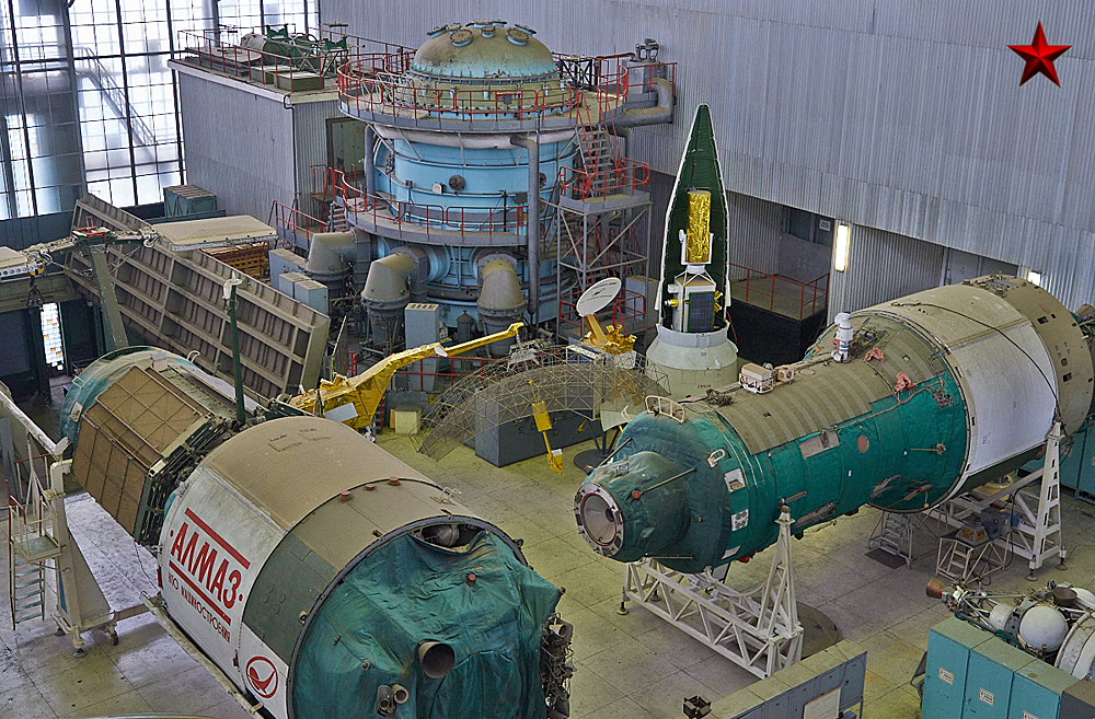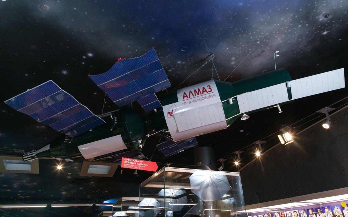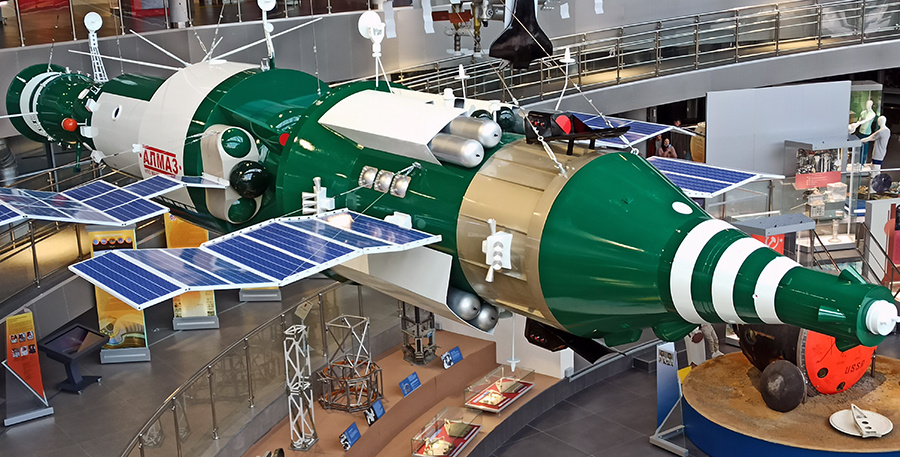 Комплекс орбитальной пилотируемой станции «Алмаз», транспортного космического корабля «Союз-7К-Т» в музее космонавтики в Калуге.