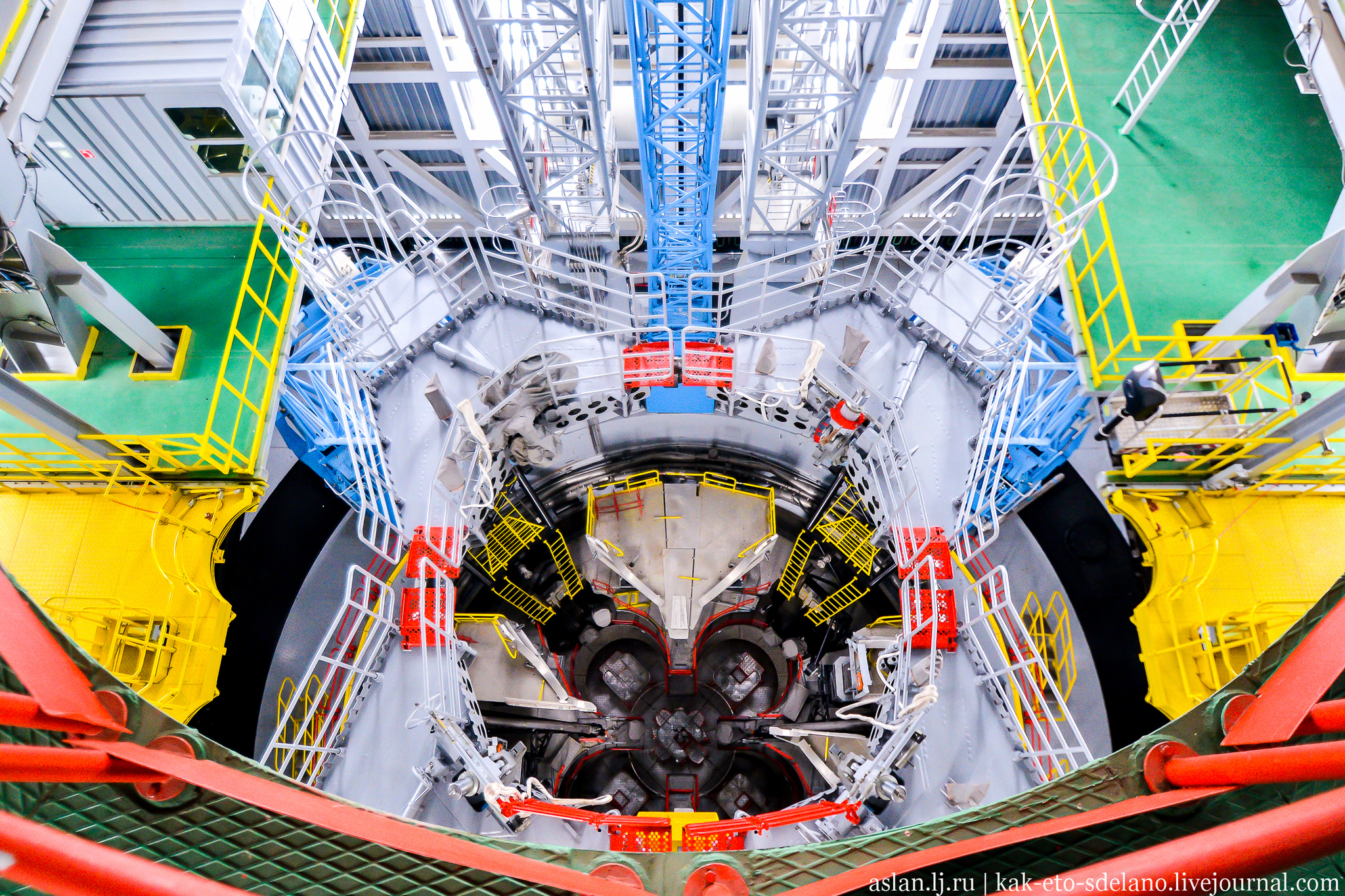 На этом фото передвижная башня, с помощью которой обслуживается ракета. Но кадры изнутри покажу позже.