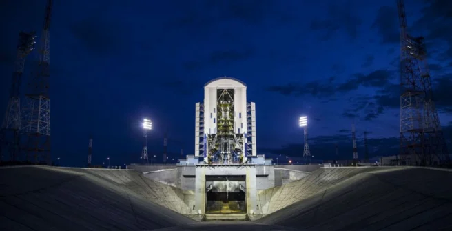 Ну и, конечно же, гвоздь программы, стартовое сооружение ракеты-носителя "Ангара". Вот над этим углублением и будет располагаться ракета в момент старта.