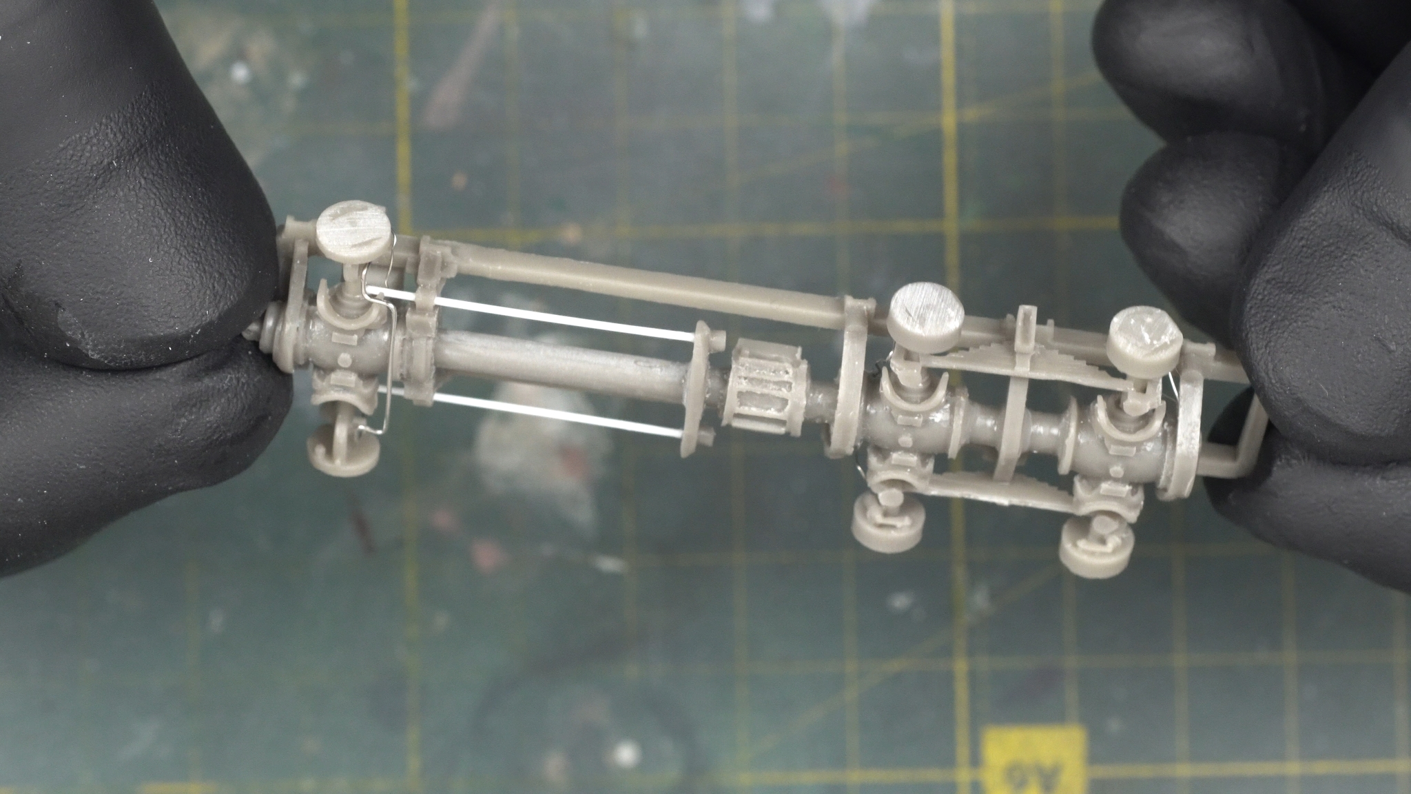 Задняя пара мостов имеет независимую подвеску с качающимися полуосями и полным приводом на все 6-ть колёс. Такая конструкция рамы на разгруженном грузовике создает так называемую косолапость колёс.
