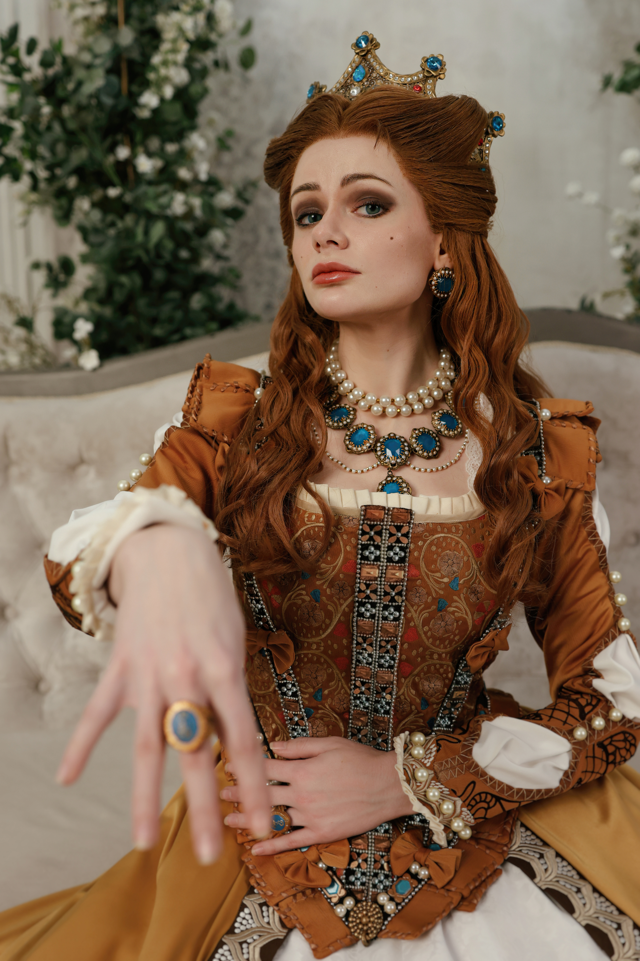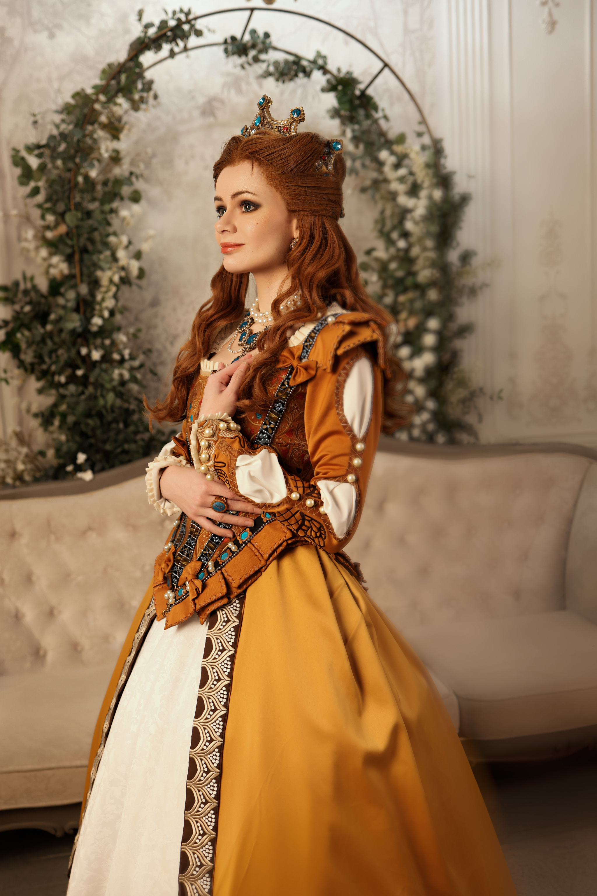 Я не так давно закончила этот безумно сложный костюм на княгиню (всё сделано моими руками) и первым постом хотела поделиться деталями образа, которых тут очень очень много! Если вам интересен процесс создания - вы можете полностью прочитать о нем в моём телеграмм канале https://t.me/nix_cosplay (если хотите пост на пикабу дайте знать).