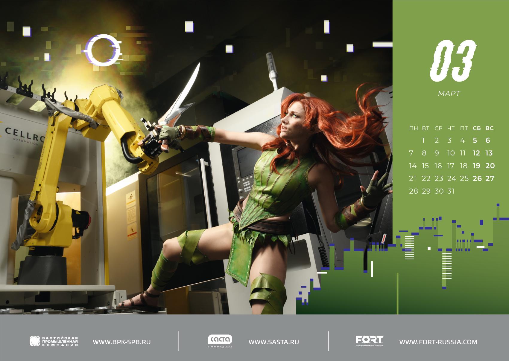 Тематика свежего выпуска – косплей. В съемках календаря для наших предприятий принимали участие лучшие косплей-модели страны, имеющие мировую популярность: Narga, Winry, Sladkoslava и Nancy. Фотографом выступил непревзойденный Олег Зотов.