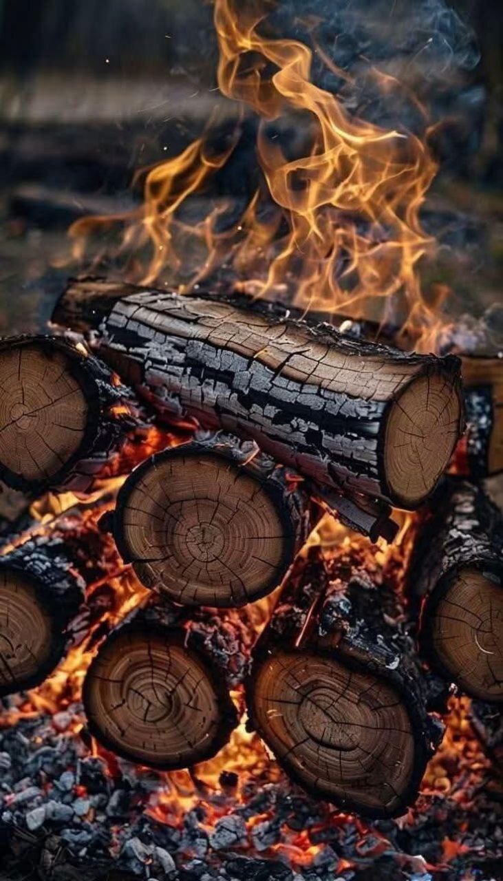 На некоторые явления можно смотреть долго. Глаз не устает, в голове возникает ленивая пустота, истома души... Огонь, вот как на картинке, это оно. Посидишь у такого костра час-другой, вечер перейдёт в сумерки и сгустится до ночи, поленья прогорят, черно-красные угли греют теплом, потрескивают и тревожат тенью и бликами по окрестным кустам... Помню, было, давно. Хорошо было... Надо бы зажечь. Надо повториить. Надо?