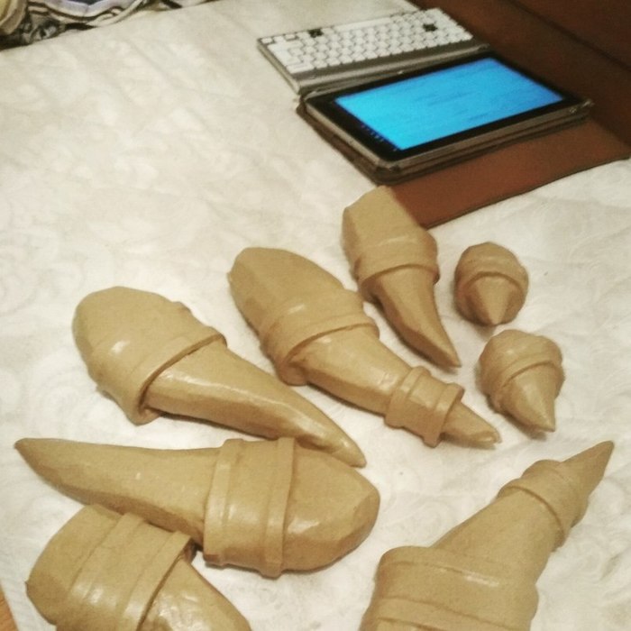 Потом я вставила готовы рога в основу наплечников и тут понеслась жуть…