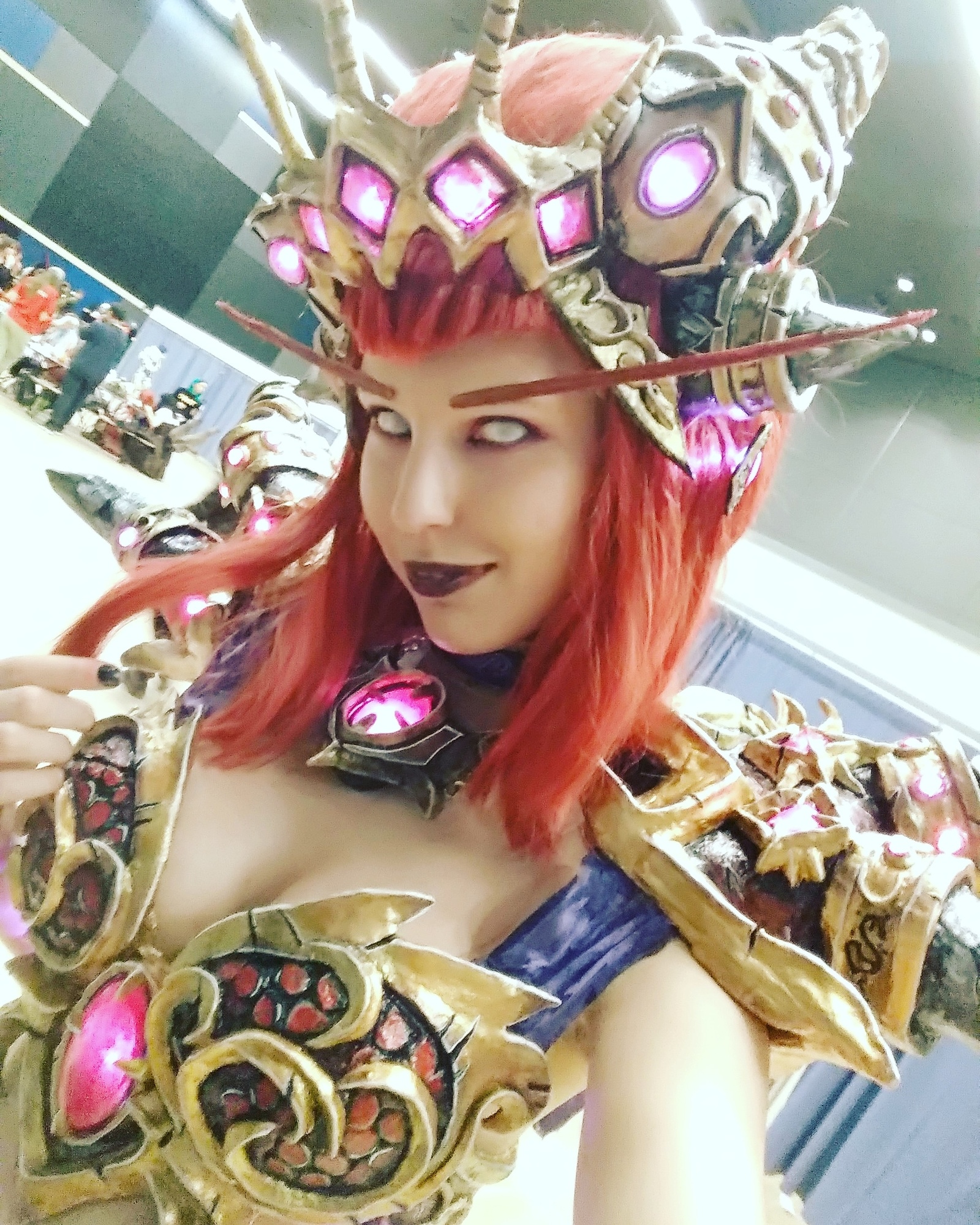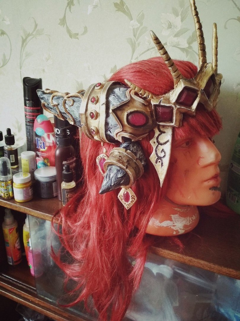 Большая часть костюма сделана по Арту художника, а ориджинал оригинальная голова от модельки Алекстразы в игре, плюс покрас доспехов.