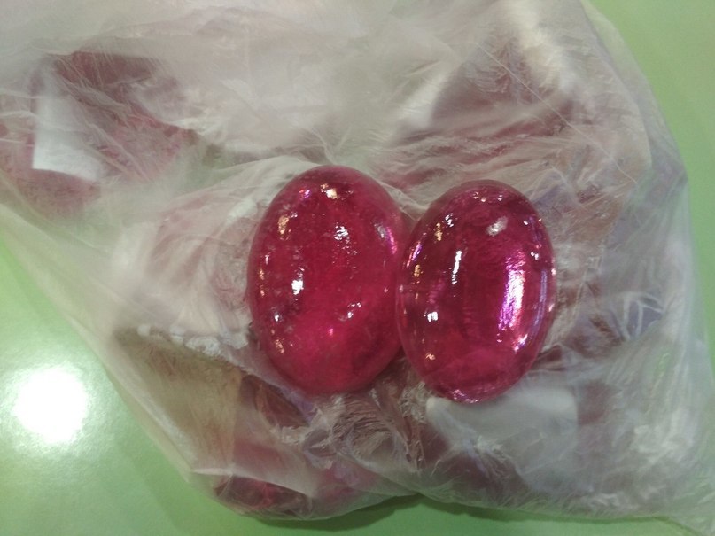 Камни эпоксидные, покрашены с обратной стороны лаками (малиновый и блестки)
