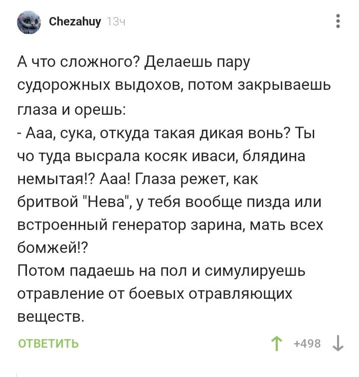 104 Vistada Косяк иваси)) 3 года назад Не могла не заскринить, @Chezanuy спасибо за искрометный коммент) ссылка на пост Ответ на пост «Вонючка» Юмор Скриншот Комментарии на Пикабу Запах 3 Ещё 0