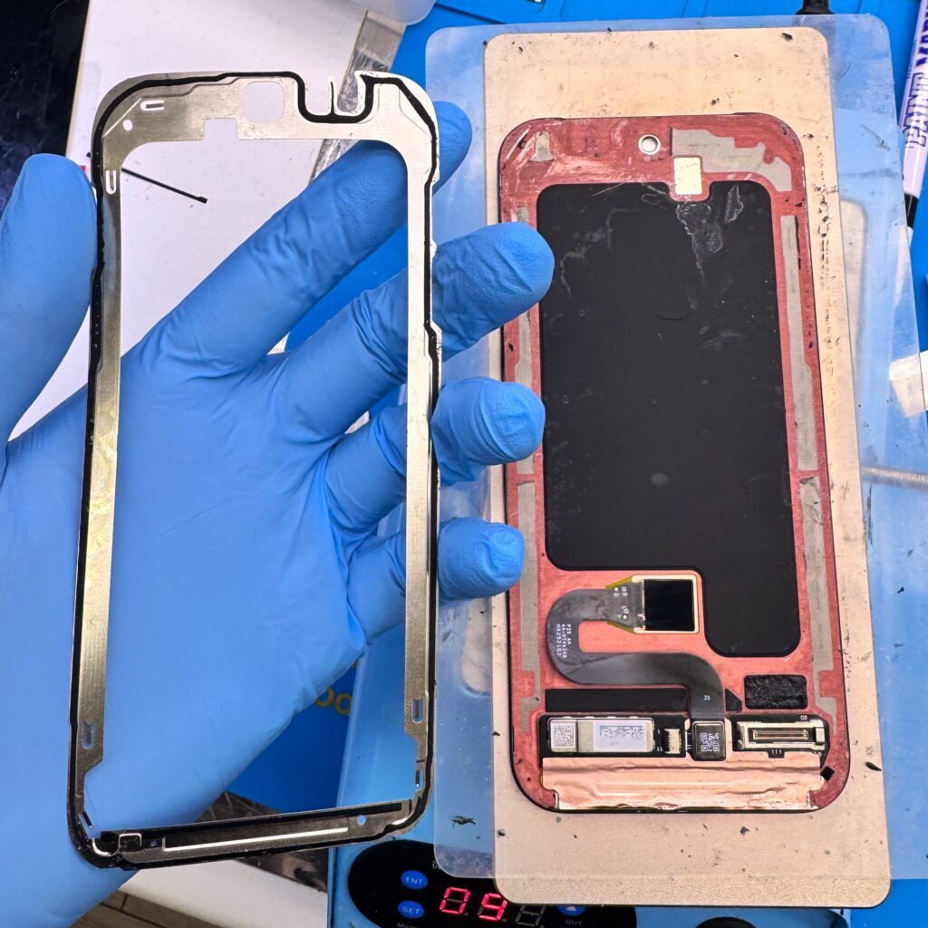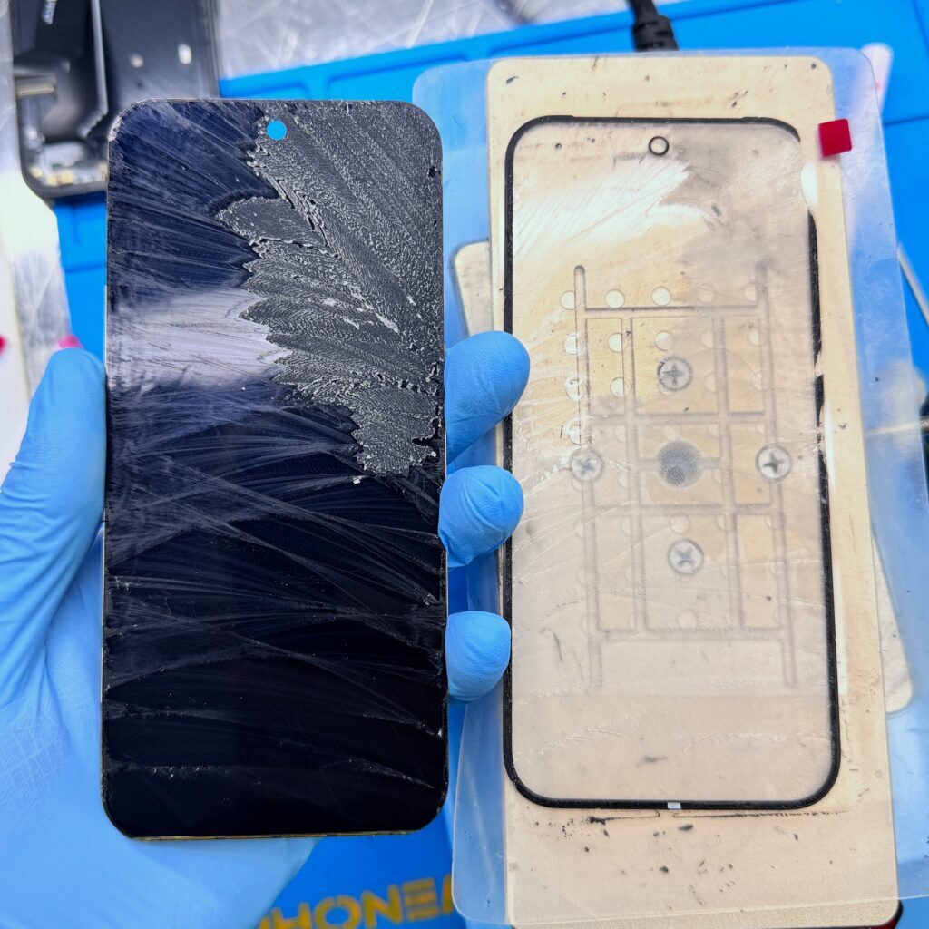 Для начала кидаем разбитого американца на нагрев и выклеиваем разбитый дисплей из корпуса и……