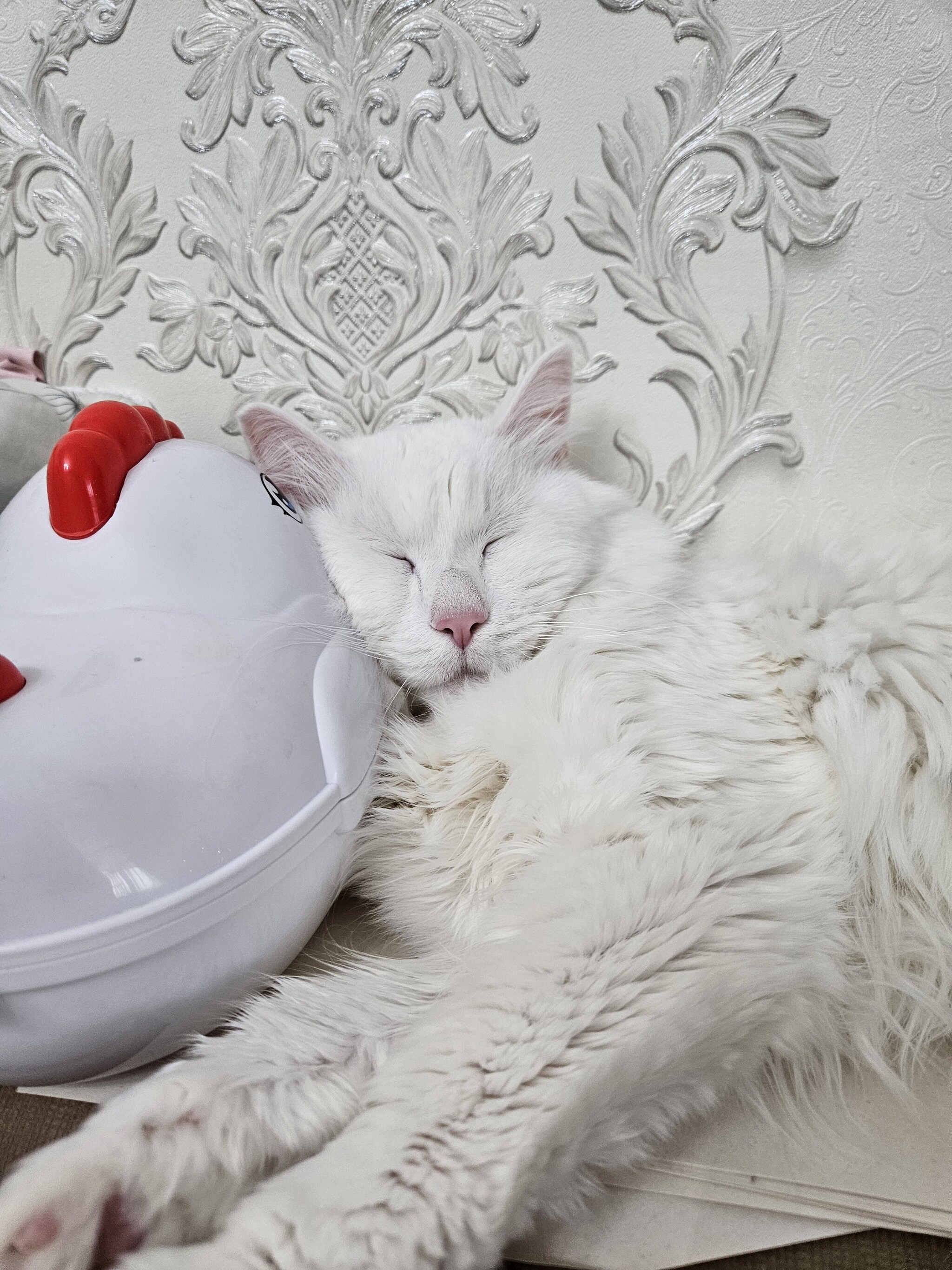 Ест строго сухой корм, оливки, крабовые палочки, икру, и ягодное мороженое ,больше за еду ничего не признает)