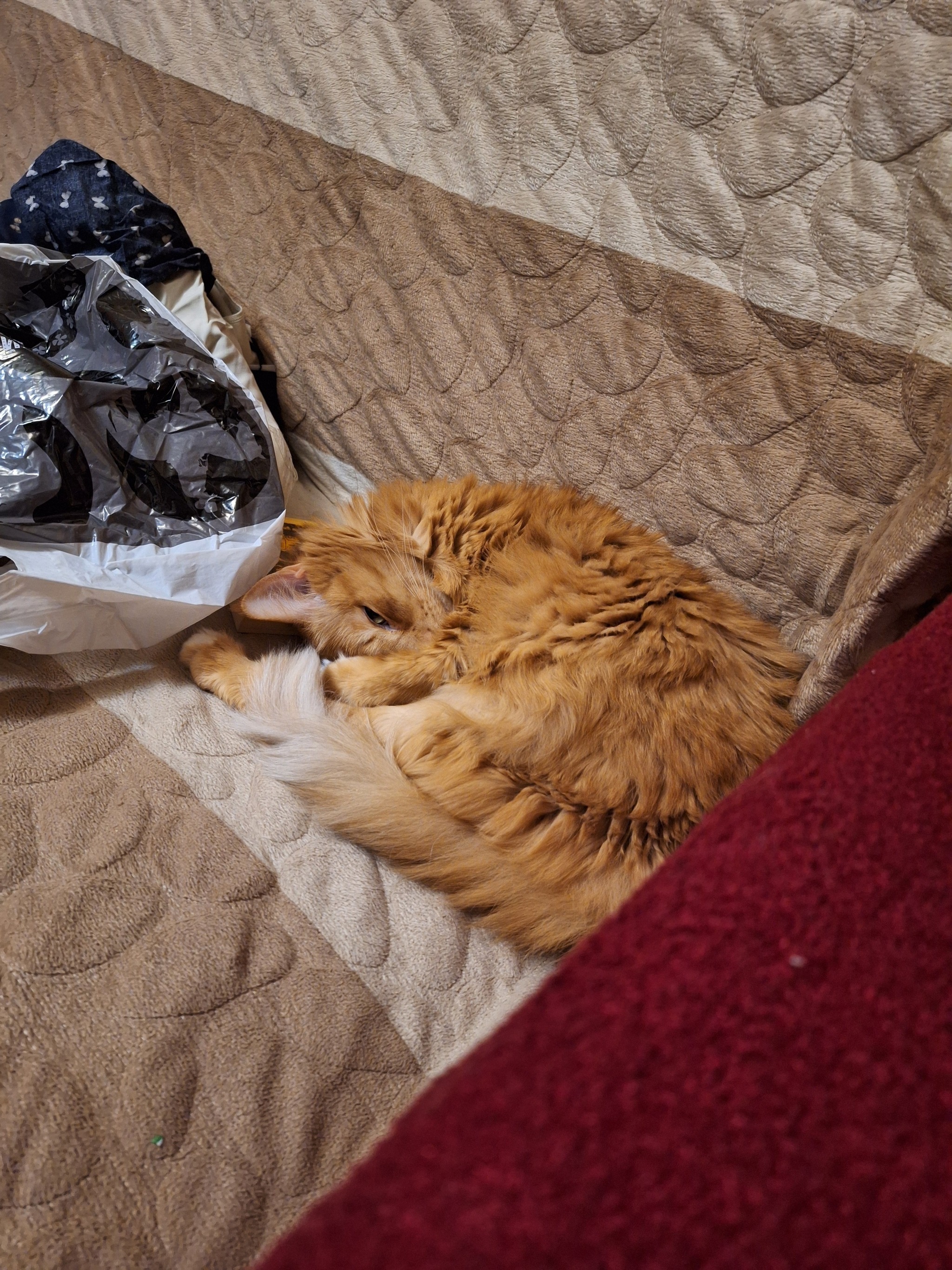 На кровати строго один угол в котором он спит, мы с женой не лезем ночью к нему, а он к нам)
