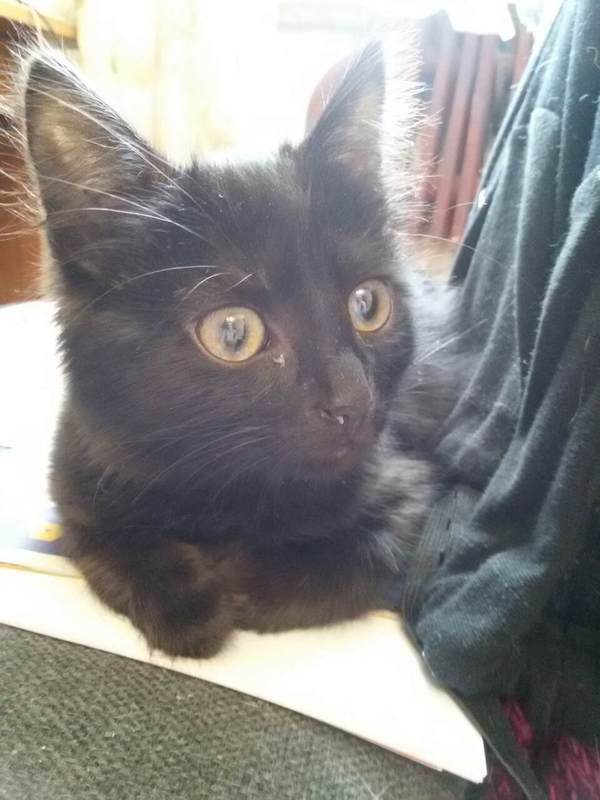 Суть. Ночью слышал что мявкает в подъезде, не придал значения. Утром выходил из квартиры на работу - черное нечто прошмыгнуло в дверь. Присмотрелся - котенок. Жена и ребенок в восторге, домашняя кошка в ужасе. При детальном осмотре были выявлены следующие тех. характеристики: