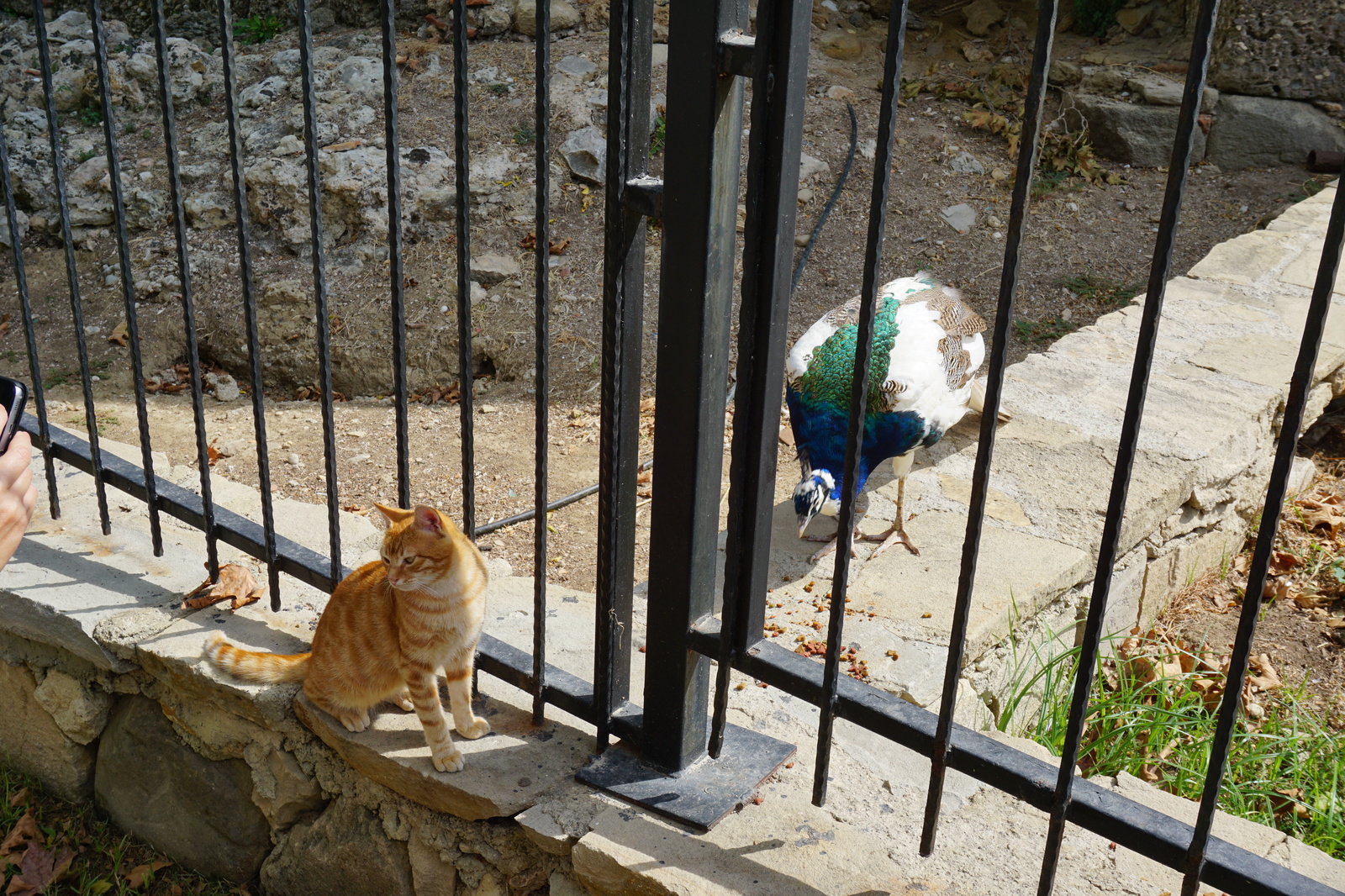 60 Hellephant Кот и павлин. 7 лет назад Рыжий позирует перед туристами на фоне павлина, клюющего кошачий корм..... P.S. Это не зоопарк. Всё происходит в музее античного искусства. [моё] Кот Павлин Фотография Котомафия Моё