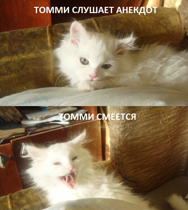 Нашел у себя в архивах, здесь кот еще мелкий совсем был. Тоже весело получилось)