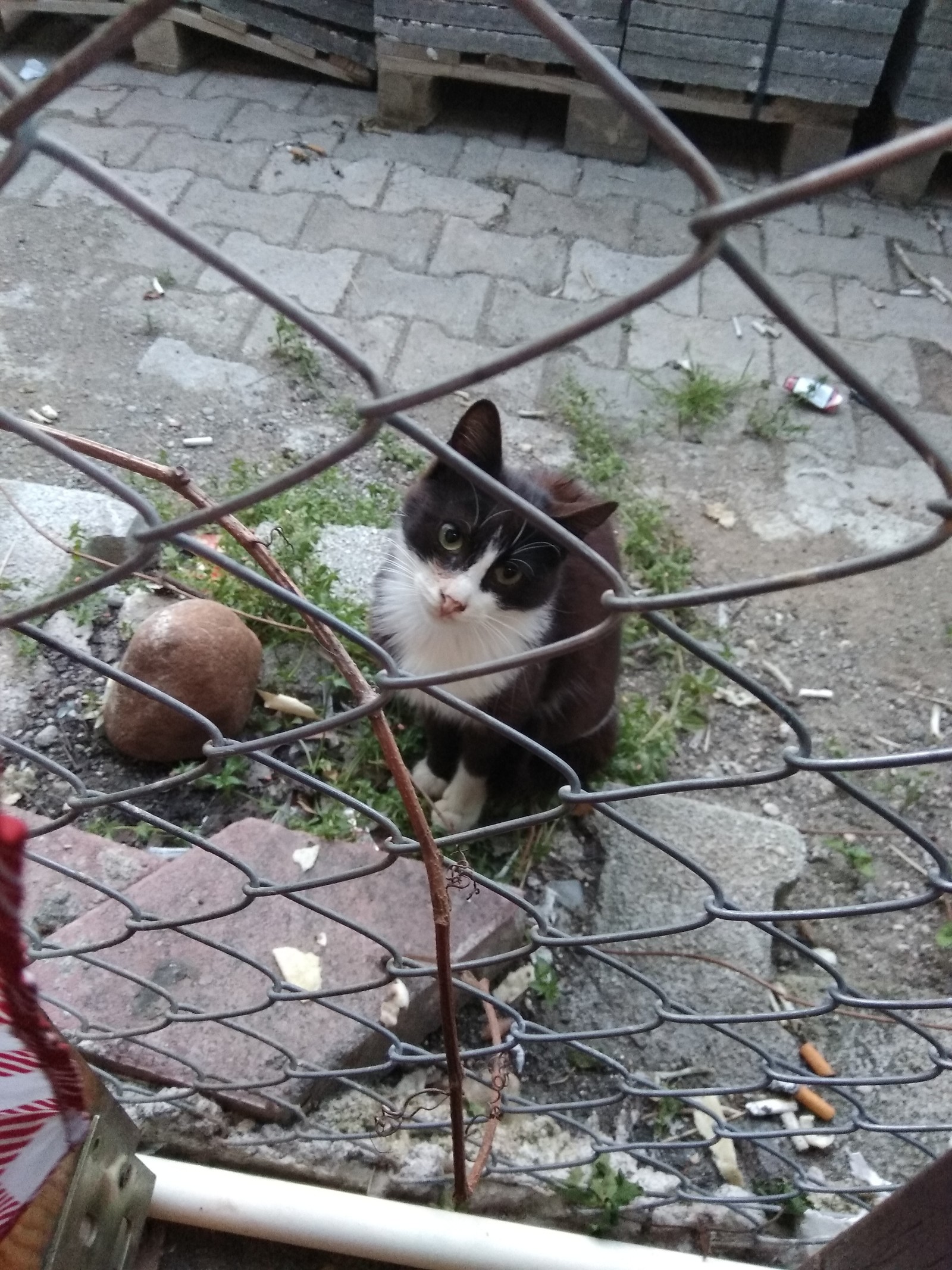 Но потом кот сделал первую попытку убить меня - залез на решетку и пытался взять меня нож, то есть на коготь.