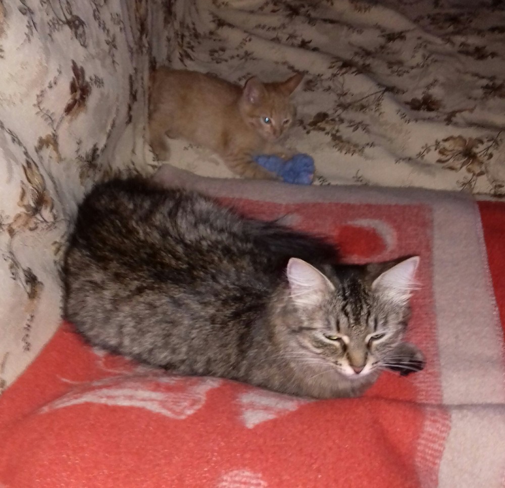 Котик был грязный, в масле и дрался как лев. Мы повезли его на наш склад, где жили кошки и где (скорее всего) его подцепили. В процессе поездки оказалось, что в машине было два котика, приехали на склад сразу прибежала кошка и вытащила из машины второго, а рыжего из пакета принять отказалась - шипела на него и не подпускала к себе. Котика стало жалко и я решил забрать его, повёл к ветеринару, где мне сказали, что он вполне в порядке, но есть паразиты и какая-то болячка на языке. Притащил его домой, помыл и дал ему лекарств, которые ему прописал врач.