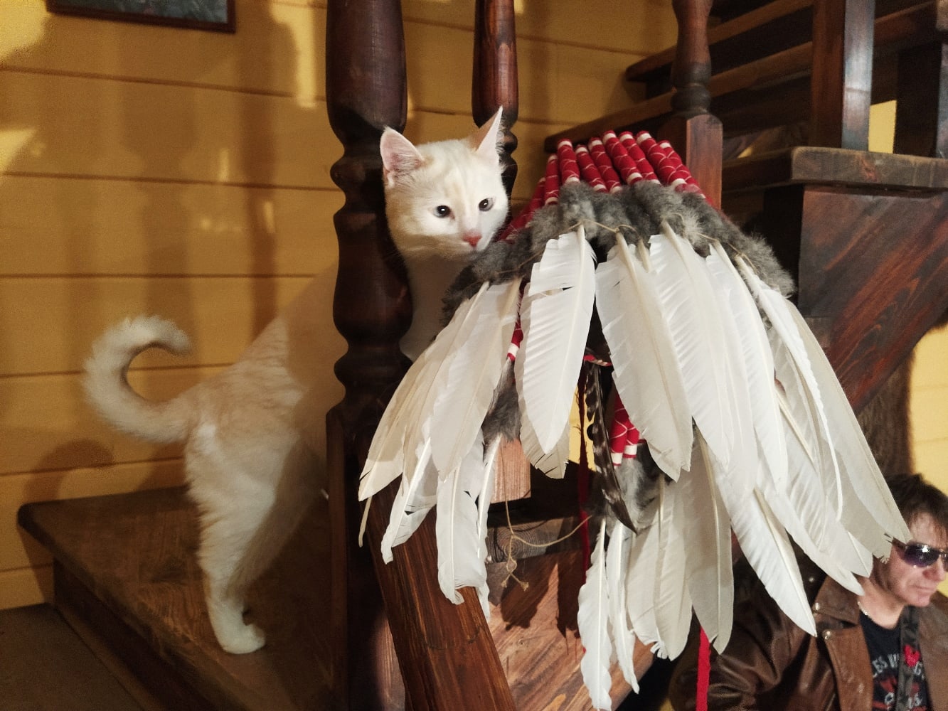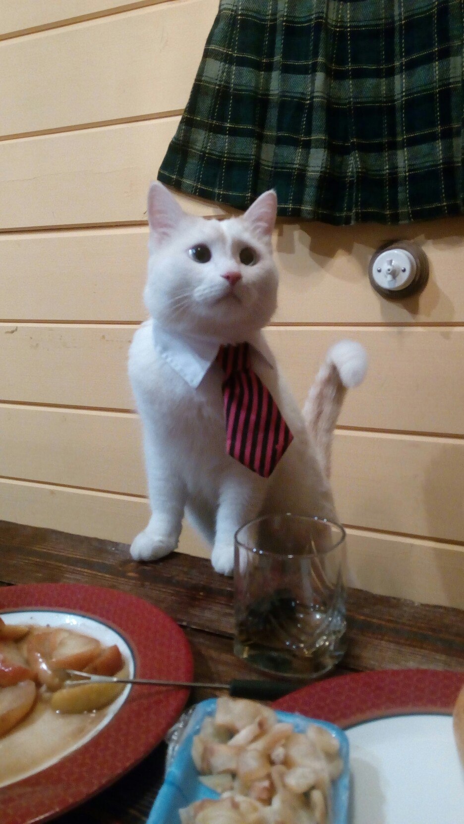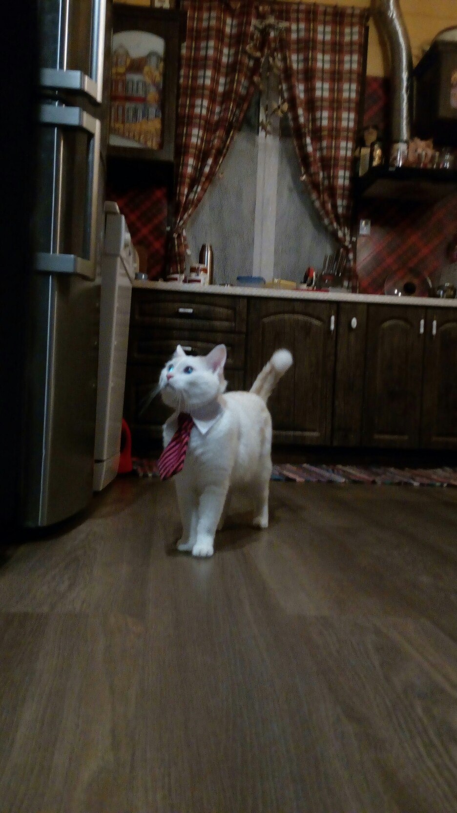 и надеваю на него малиновый кошачий галстук с Али. Юка не против)