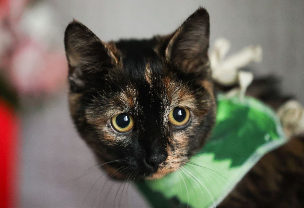 Малыша забрали. Это оказалась черепаховая девочка, ее назвали Ева. Еве от силы месяцев семь, она очень хрупкая и миниатюрная киса. По характеру ласковая, контактная, спит в ногах и с удовольствием гладится, но пока что все еще находится в стрессе из-за предательства и смены дома.