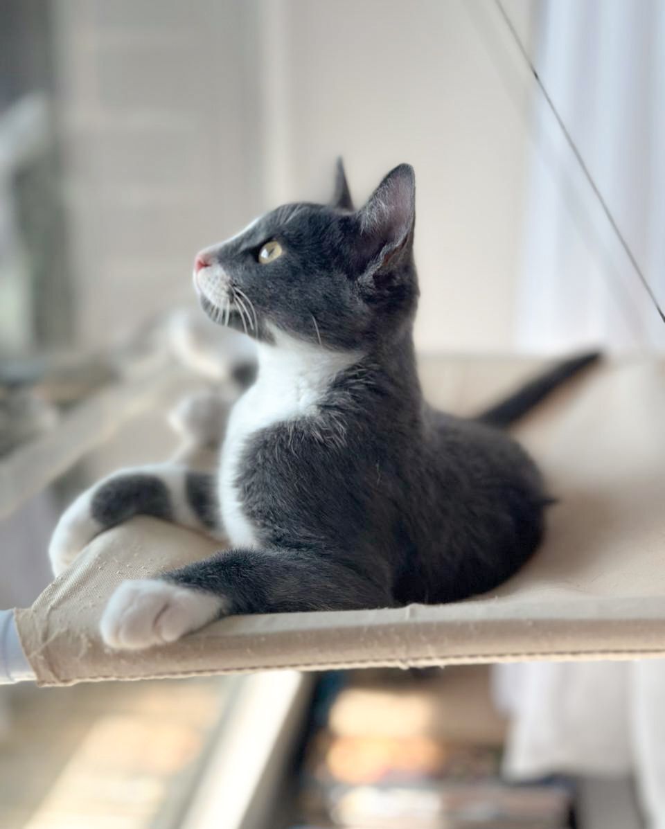 Гриша был спасен с улицы, сейчас живет на передержке в компании других котят-спасенышей.