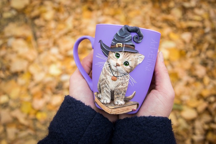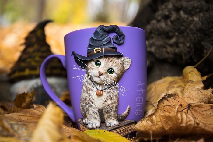 А скоро Хэллоуин))) Кот, конечно, не черный, зато шляпа ведьминская :D