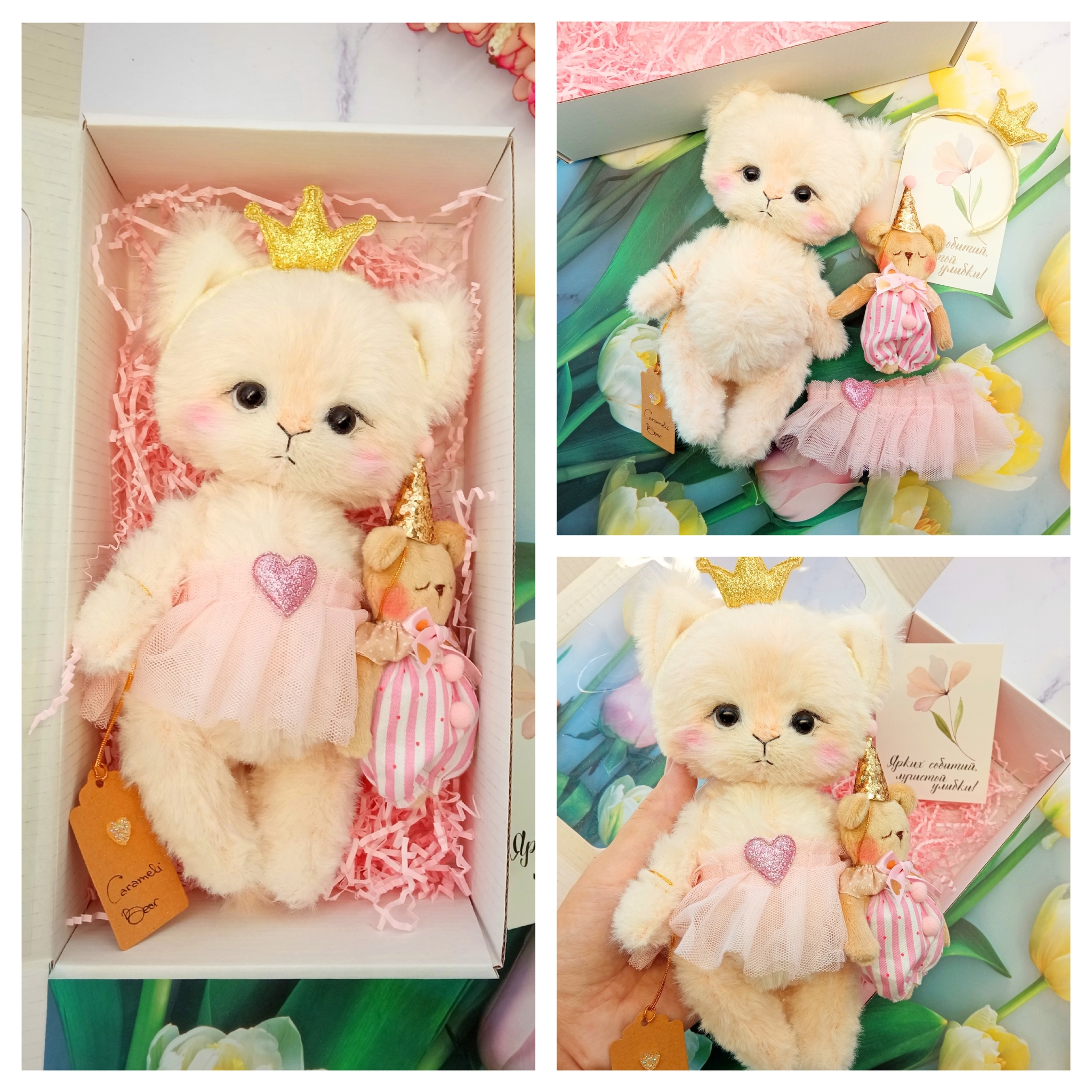 Кошечка сшита из искусственного меха, внутри синтепух. Глазки бусинки, мордочка раскрашена акрилом и пастелью.
