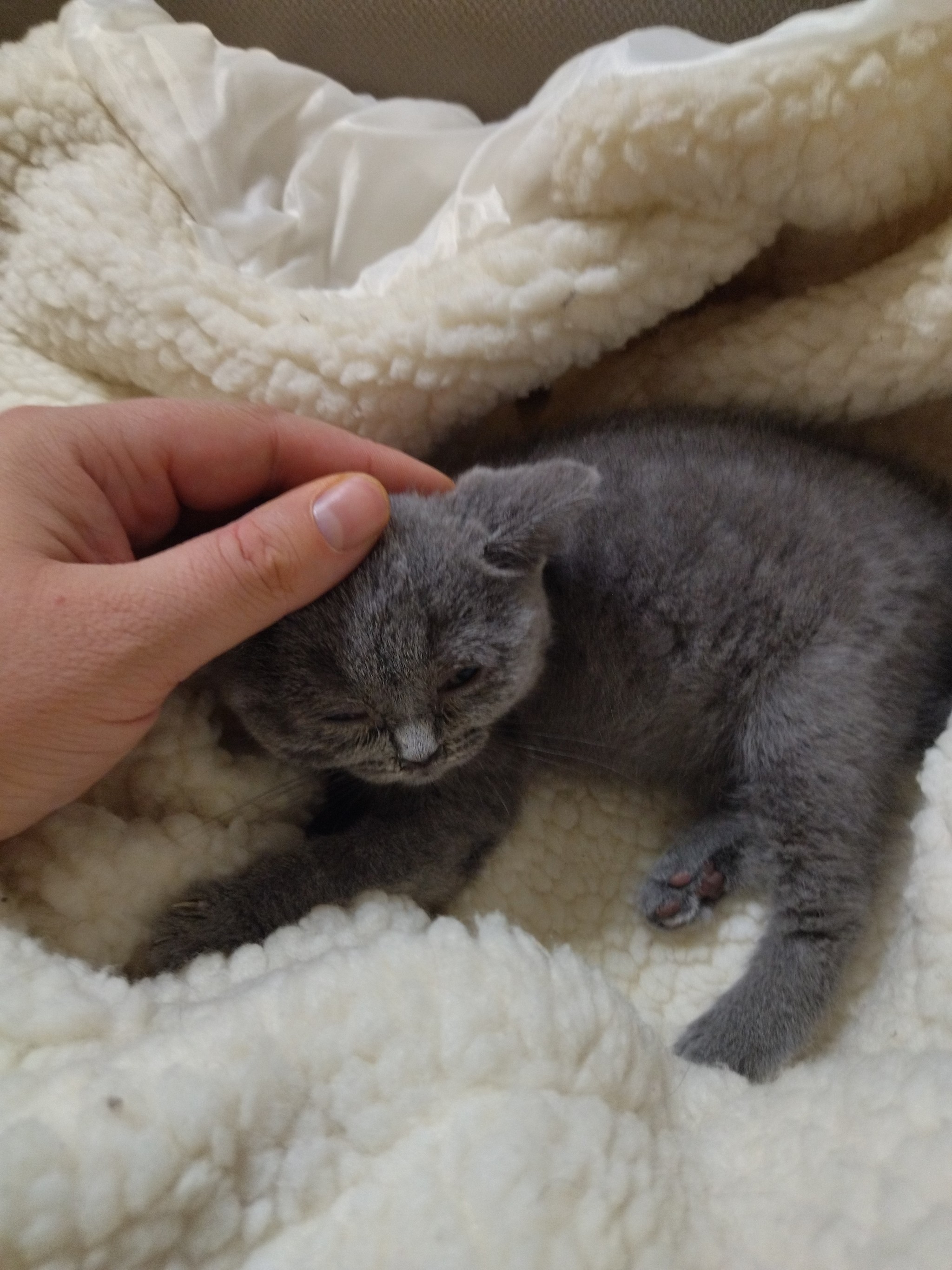 Зажрались у вас в Электростали, уже шотландских кошек выкидывают... 🤷♀️ Намочите спонжик хлоргекседином и протрите ему глаза.