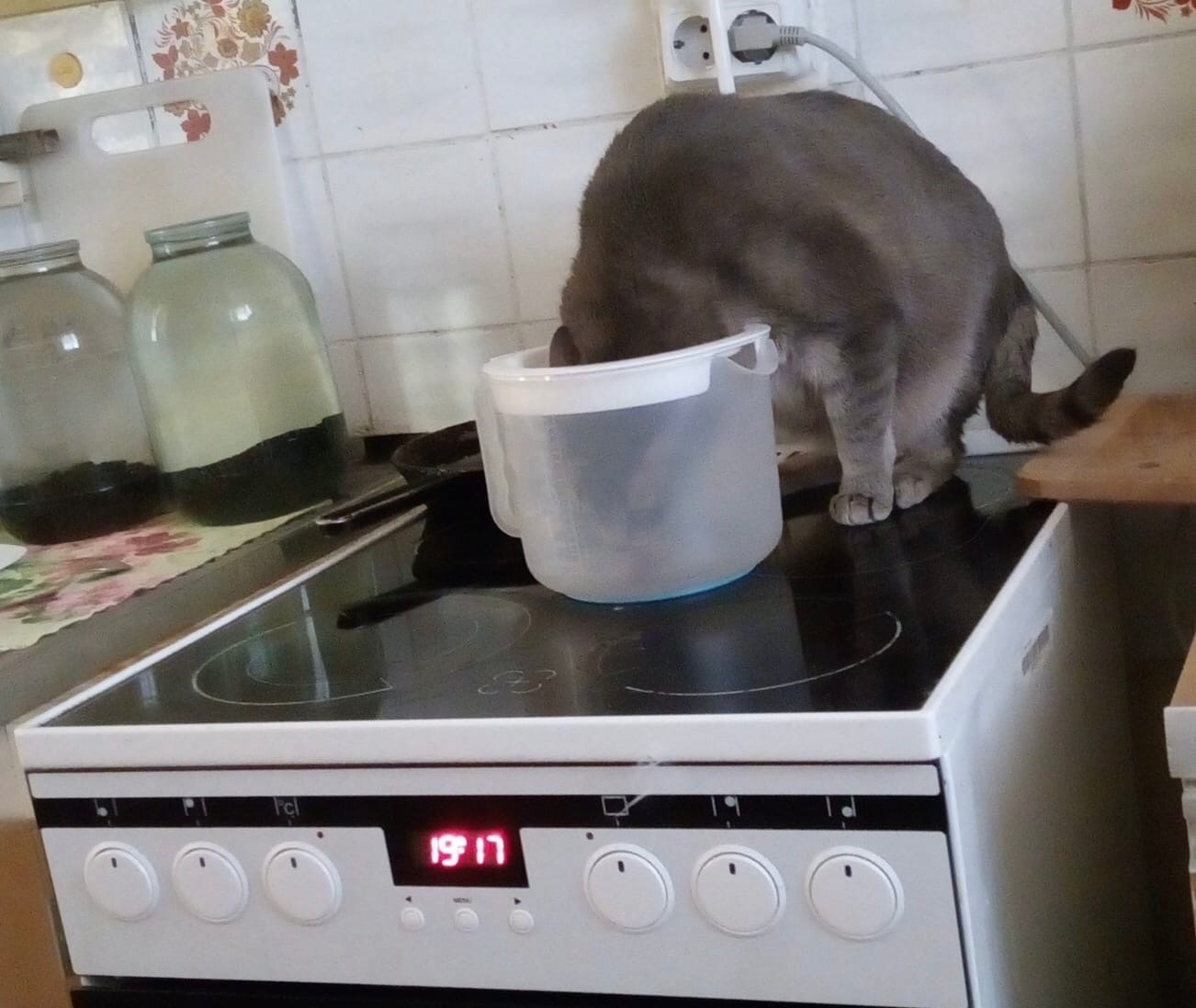 К счастью, обошлось без драк за еду и территорию. Котики спокойно ели вместе из стоящих рядом мисок. Маня даже преподала мелкому несколько уроков, например, что из поилки пьют только лохи)))))