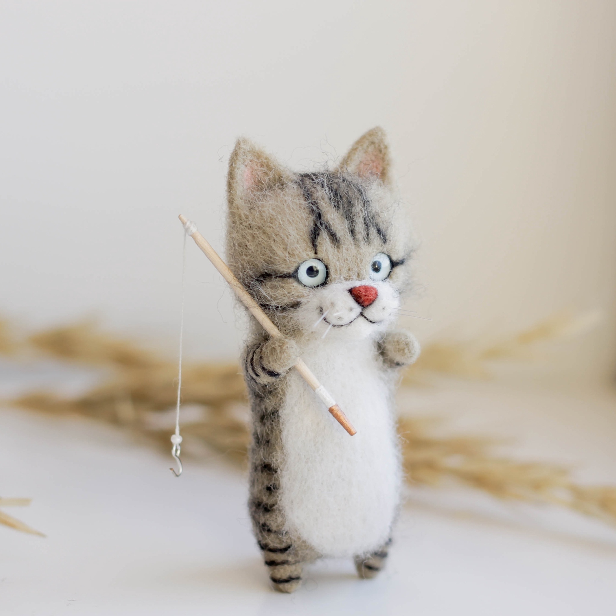 Котик создан в технике сухое валяние из овечьей шерсти. Высота 9 см. Лапы и хвост на проволочной основе. Глазки из стекла.