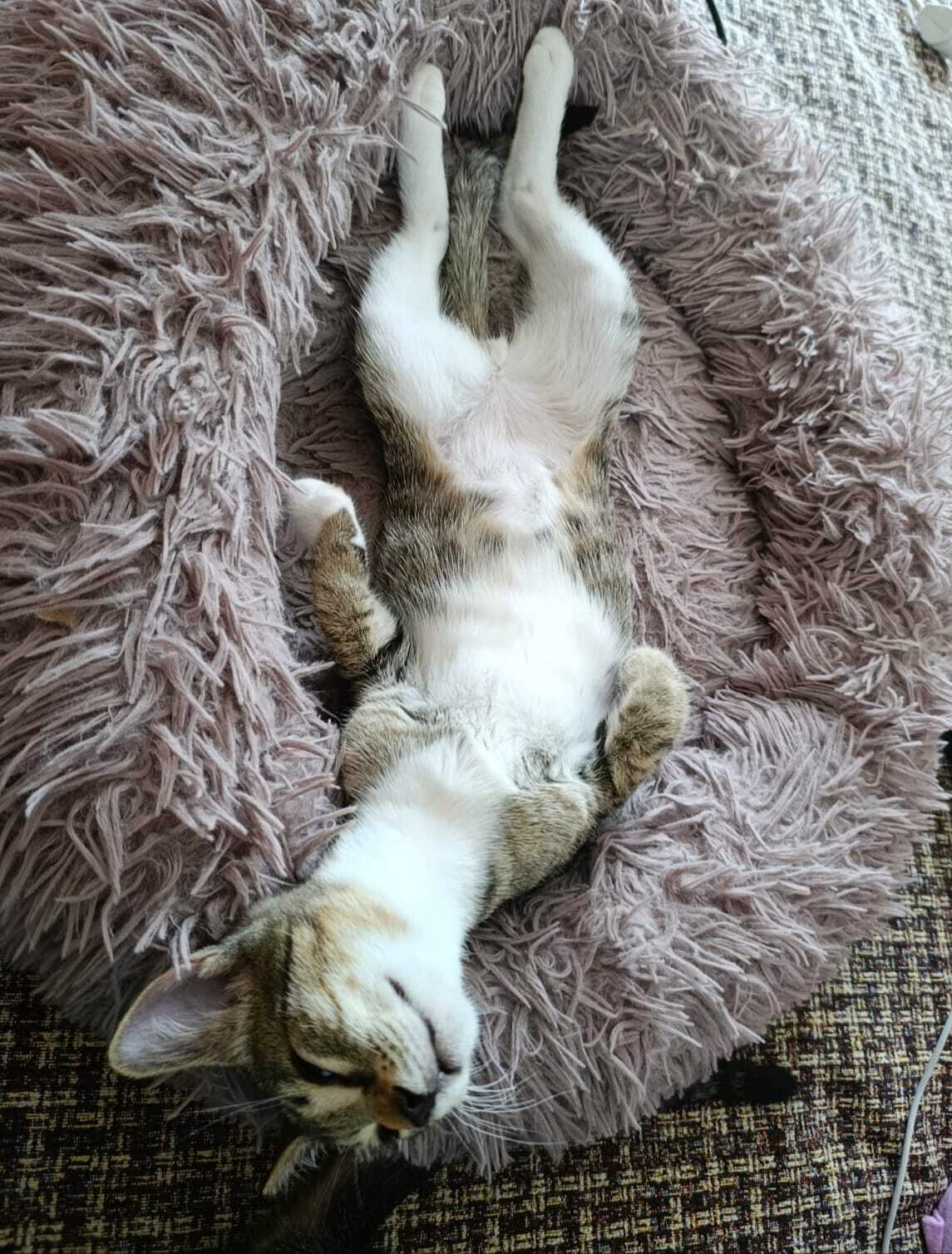 Арсения с двумя братиками подбросили на крыльцо у подъезда. Детки были настолько крошечные, что едва только глазки открыли, ещё не умели сами кушать. Волонтёр их забрала домой, выкармливала, массировала животики, вставала к ним по ночам.
