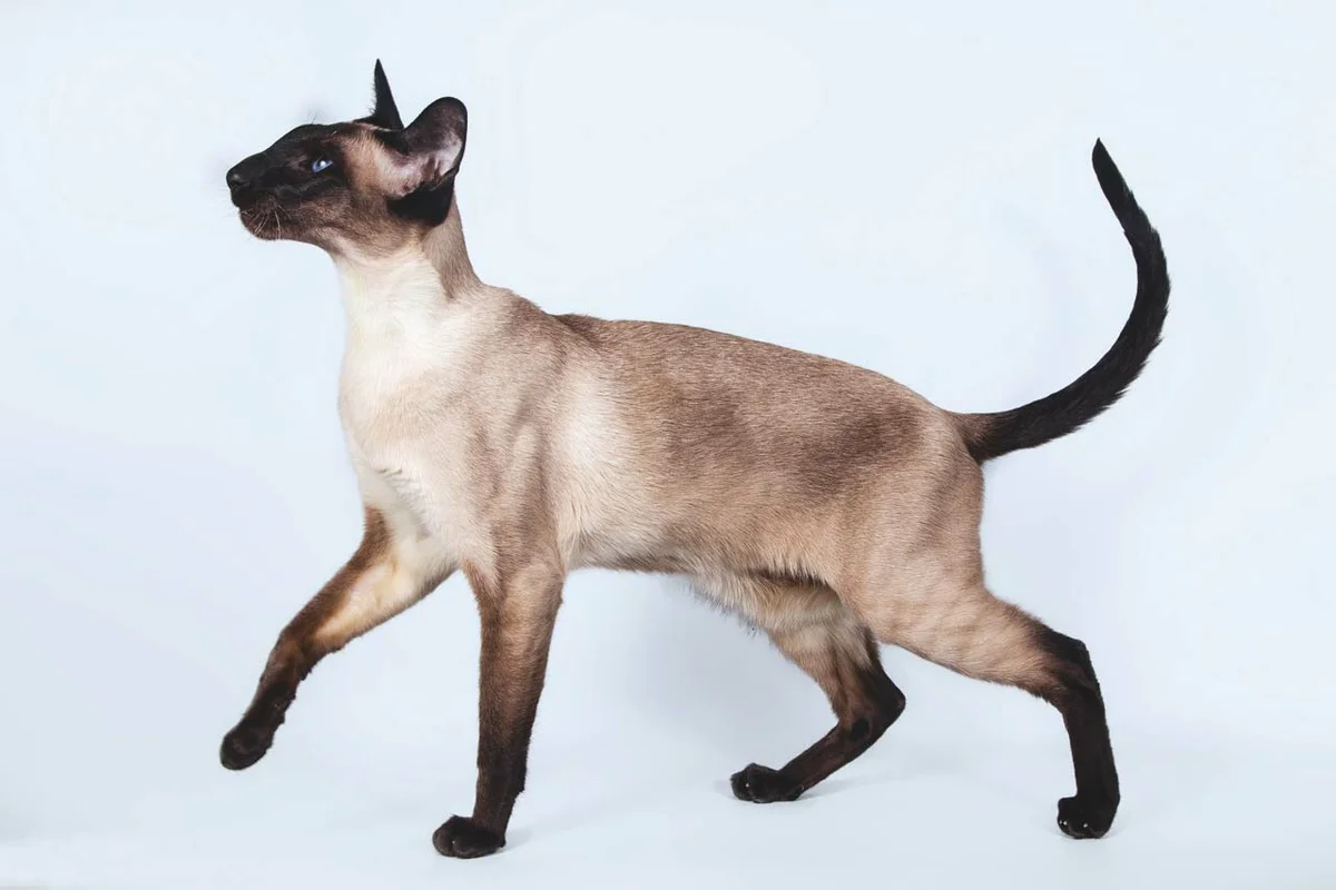 Это тайский кот. Не сиамский. Отличаются миролюбивым нравом и другим сложением. Смесь кошки, собаки и обезьяны. Если найти общий язык - будет ручной, понимать команды, лезть на ручки, ходить следом, и с ним даже поговорить можно.