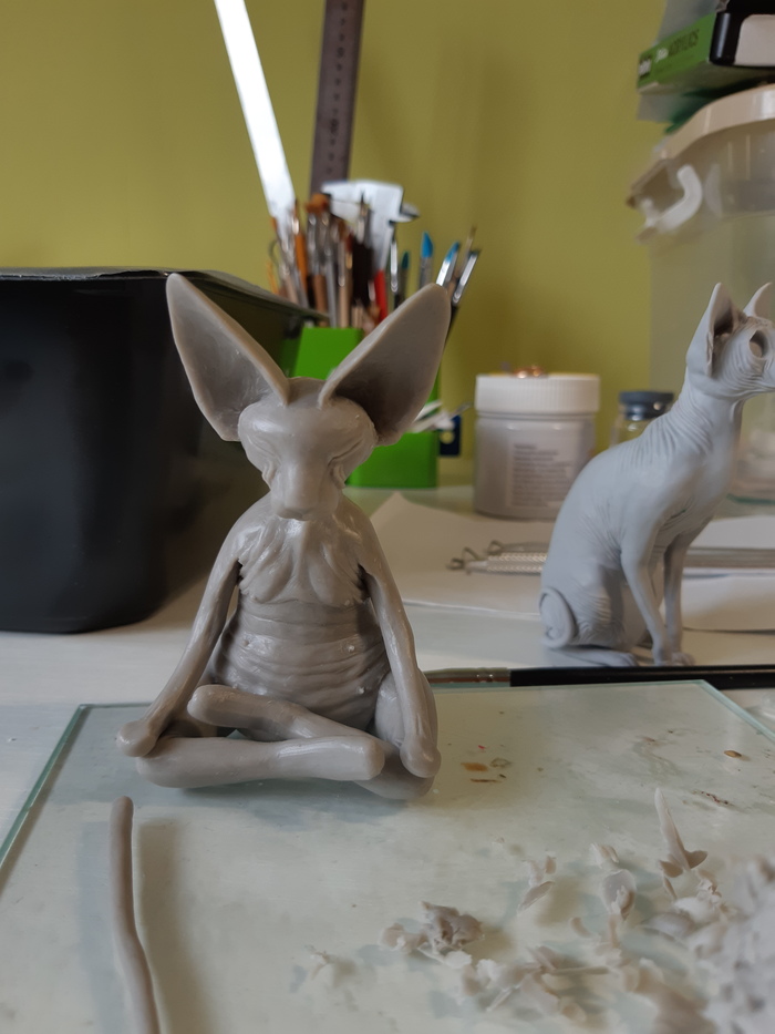 Всем привет! Все таки очень сложно мне оказалось отойти от этих чудесных котов сфинксов. И я решила сделать модель для отливки так всем понравившегося котика в позе лотоса.