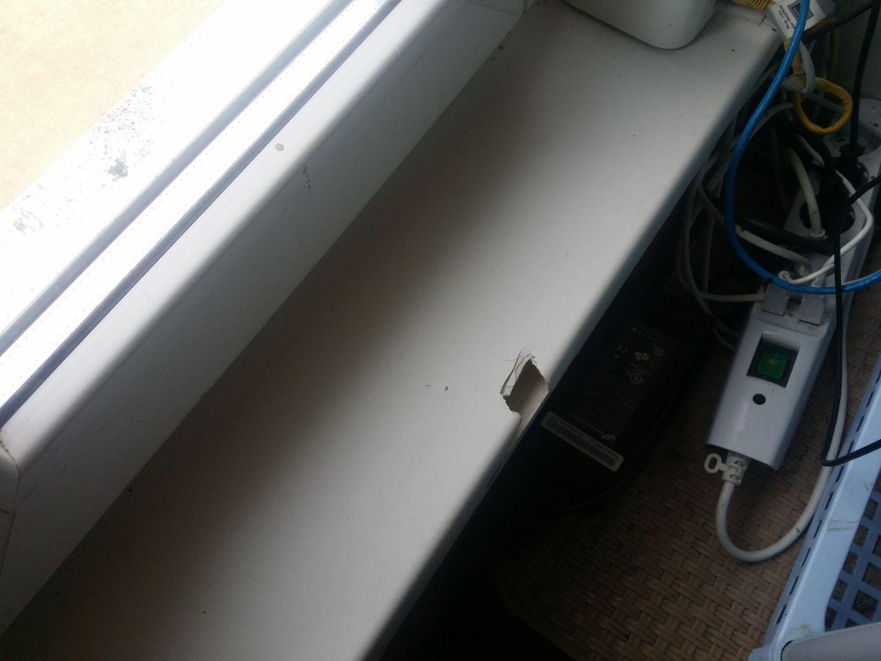 Не, ты не так понял - монитор у меня на столе стоит, а стол рядом с подоконником. Вот он со стола и свалился ребром, пробил подоконник, повезло, что сам не разбился.